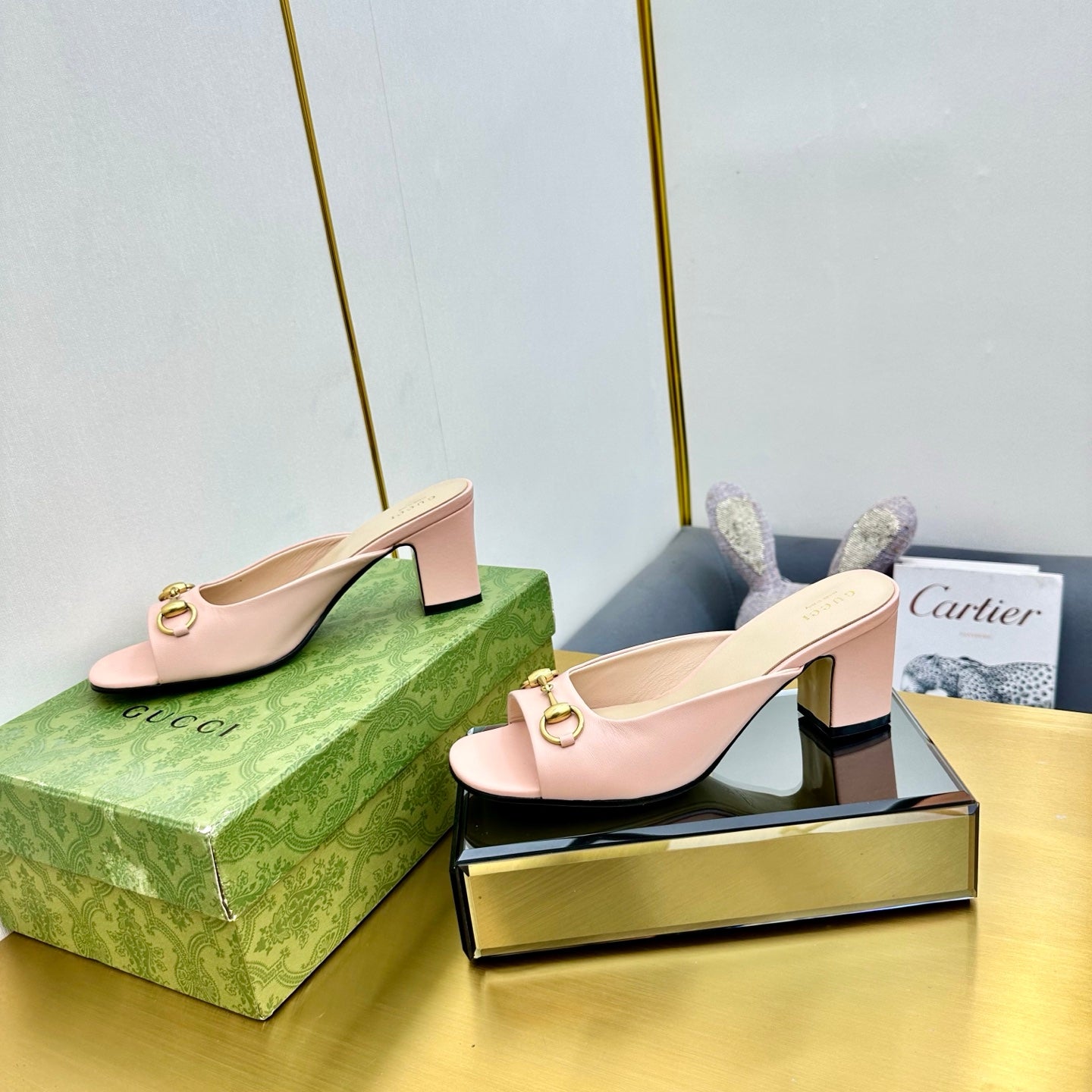 GG HIGH HEELS 55 IN PINK CALFSKIN WITH GOLD HARDWARE