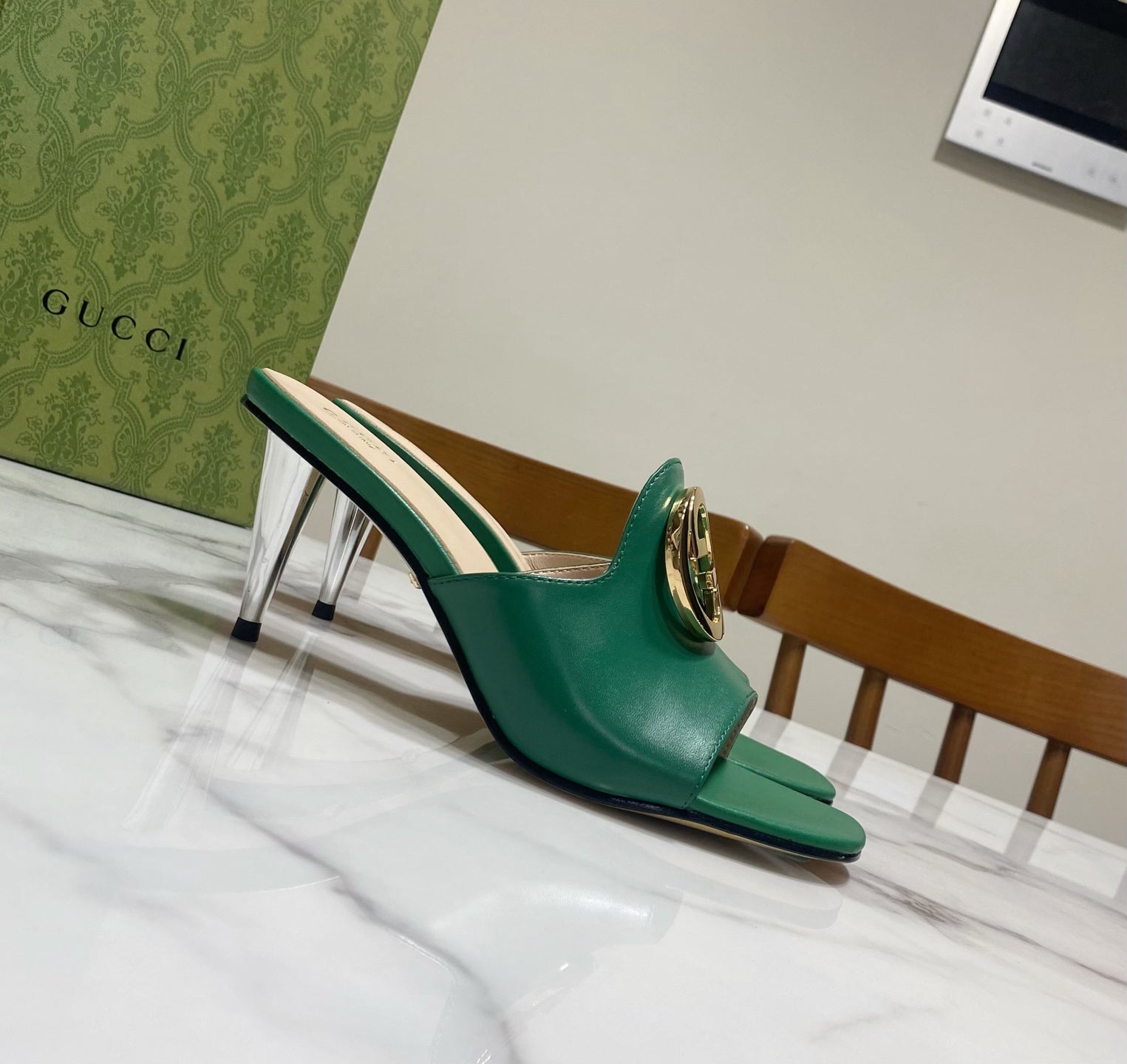 GG HIGH HEELS BLONDIE 75 IN GREEN LAMBSKIN WITH GOLD HARDWARE