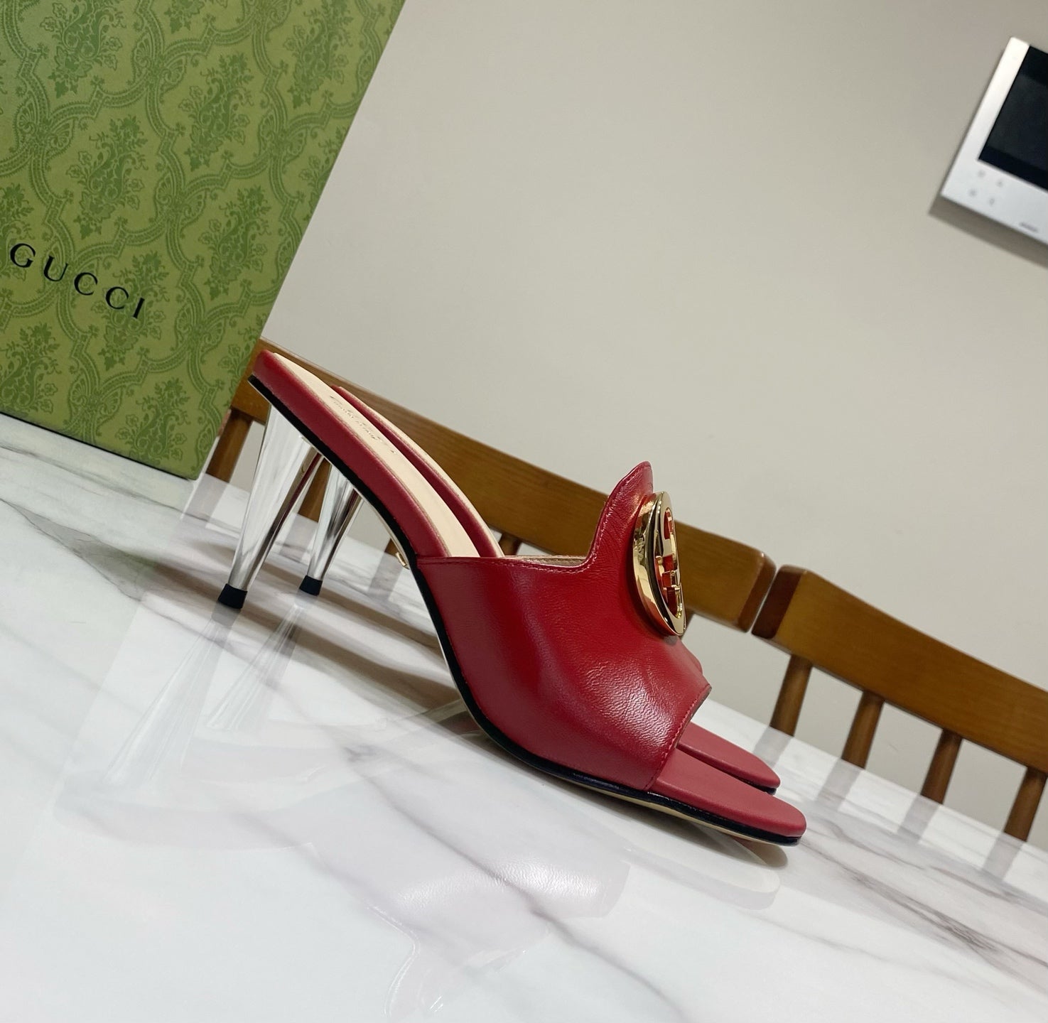 GG HIGH HEELS BLONDIE 75 IN RED LAMBSKIN WITH GOLD HARDWARE