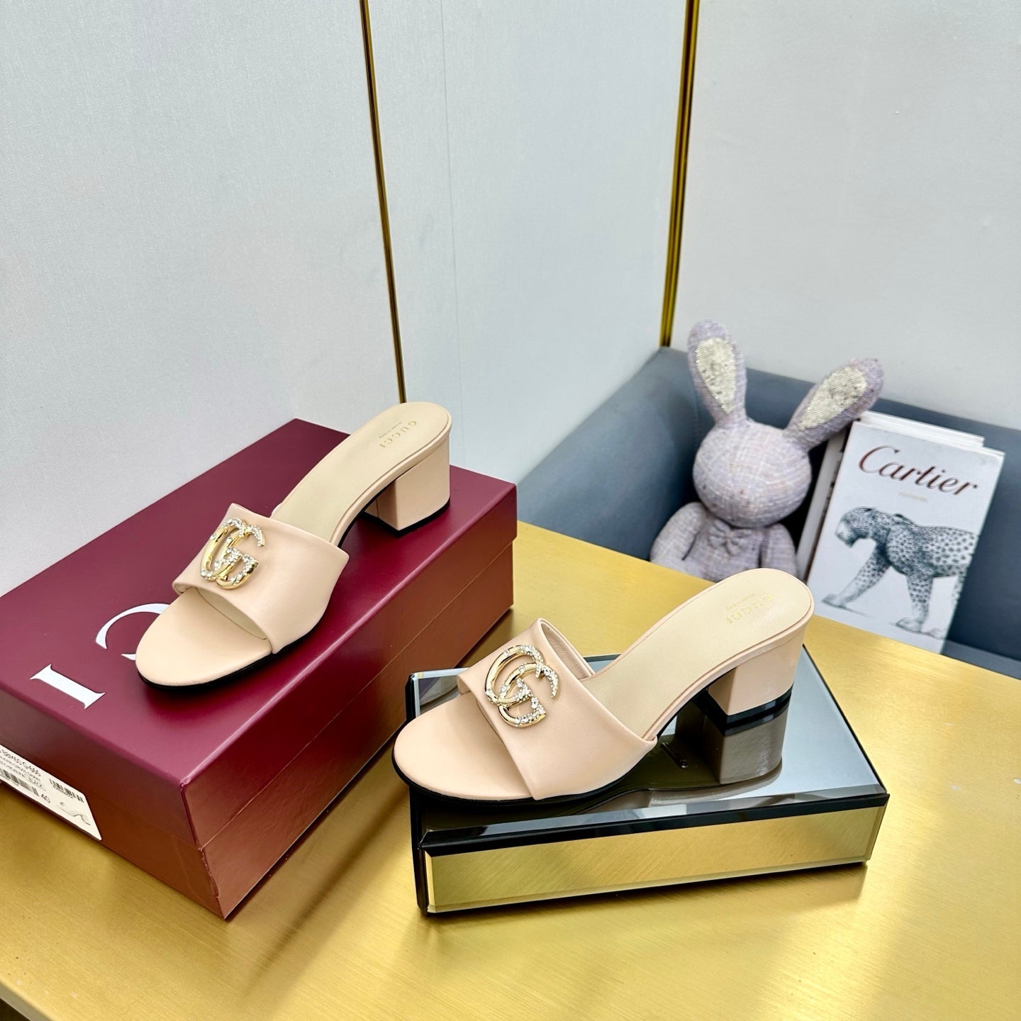 GG HIGH HEELS IN LIGHT BEIGE CALFSKIN GOLD-TONE HARDWARE WITH RHINESTONES