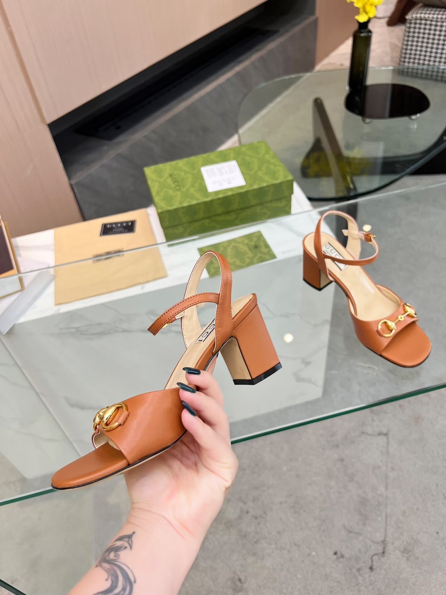 GG HIGH HEELS SANDALS 60 IN ORANGE LAMBSKIN