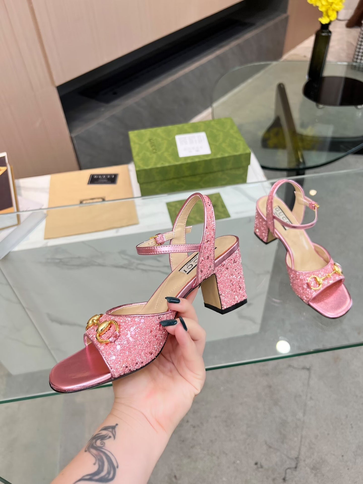 GG HIGH HEELS SANDALS 60 IN SHINY PINK LAMBSKIN
