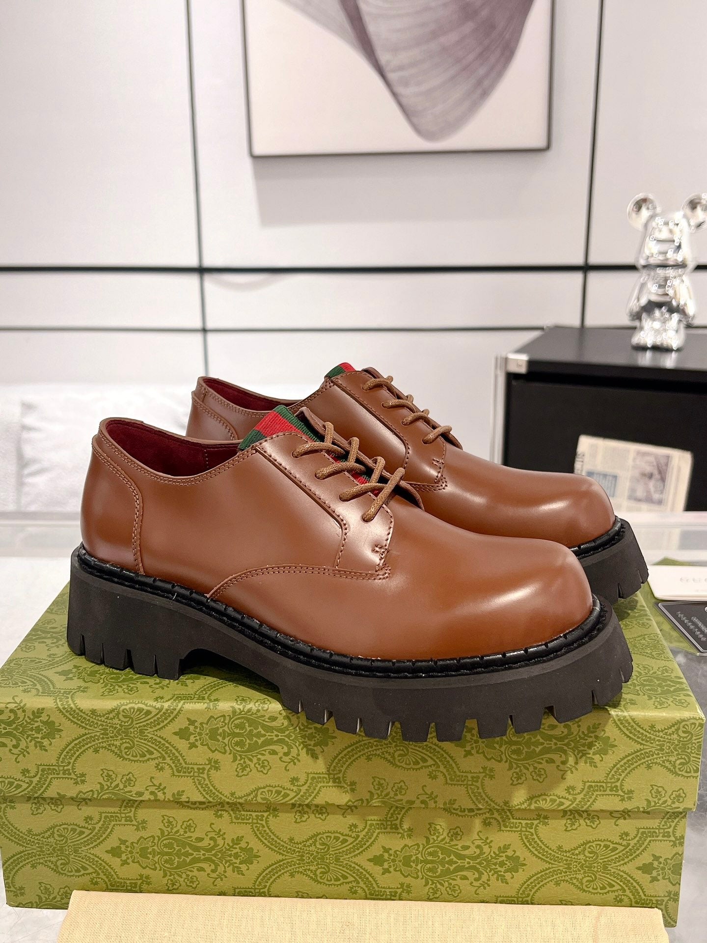 GG LACE-UP LOAFER WITH WEB IN CARAMEL BROWN SHINY LEATHER
