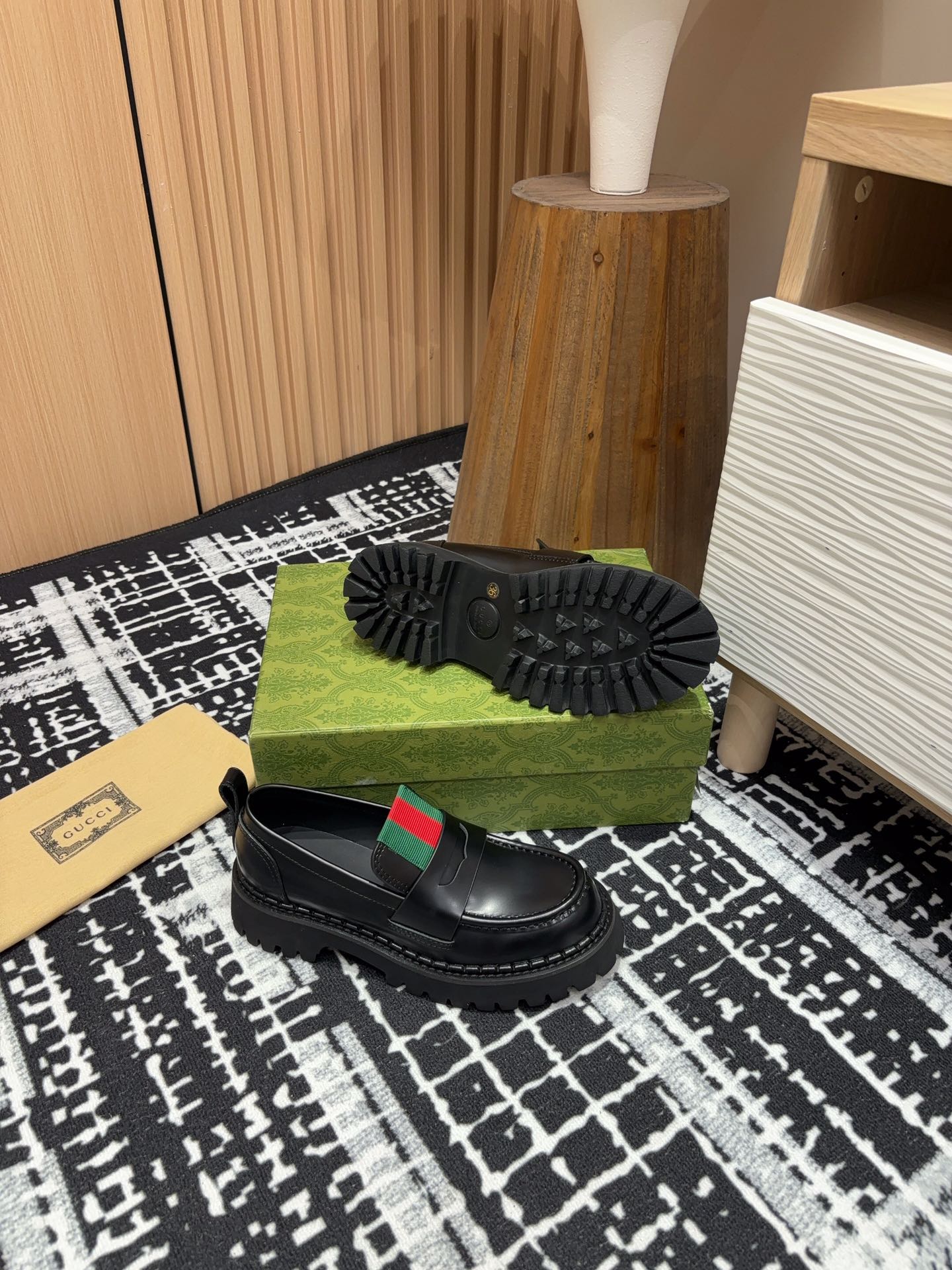 GG LOAFER WITH WEB IN BLACK CALFSKIN