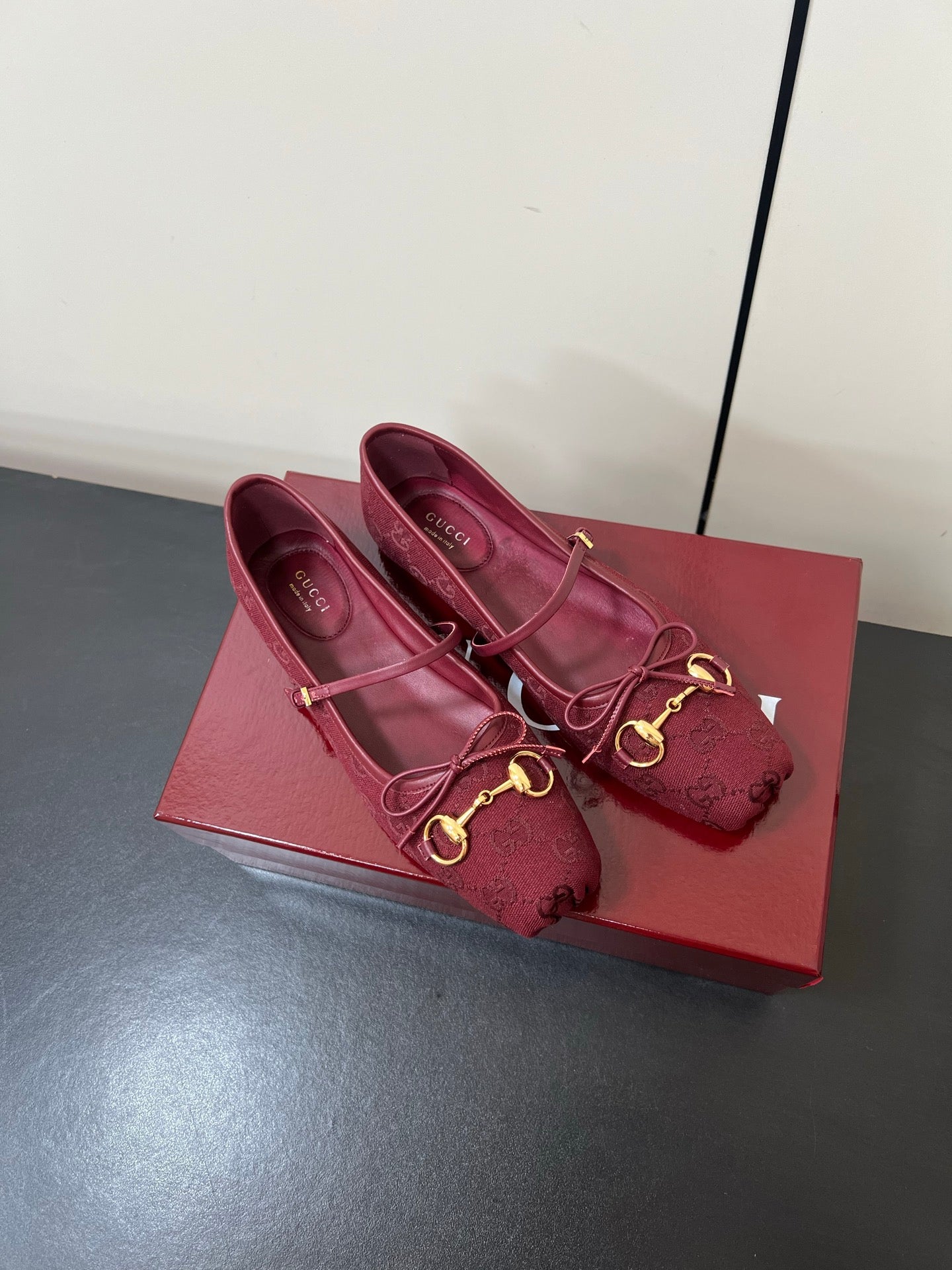 GG MARY JANE 25S IN DARK RED CANVAS WITH GOLD HARDWARE