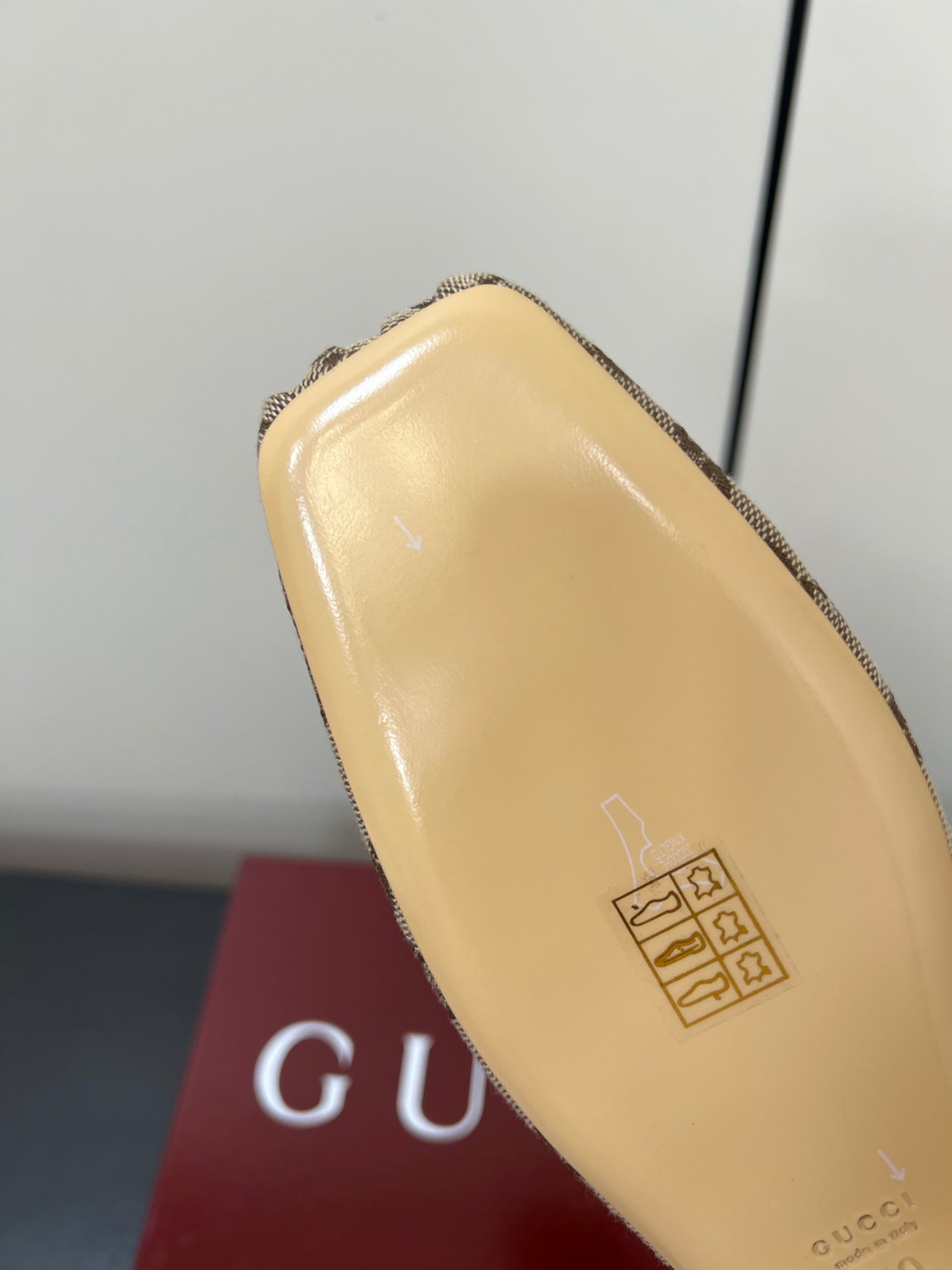 GG MARY JANE 25S IN MINK BROWN CANVAS MIX LAMBSKIN WITH GOLD HARDWARE