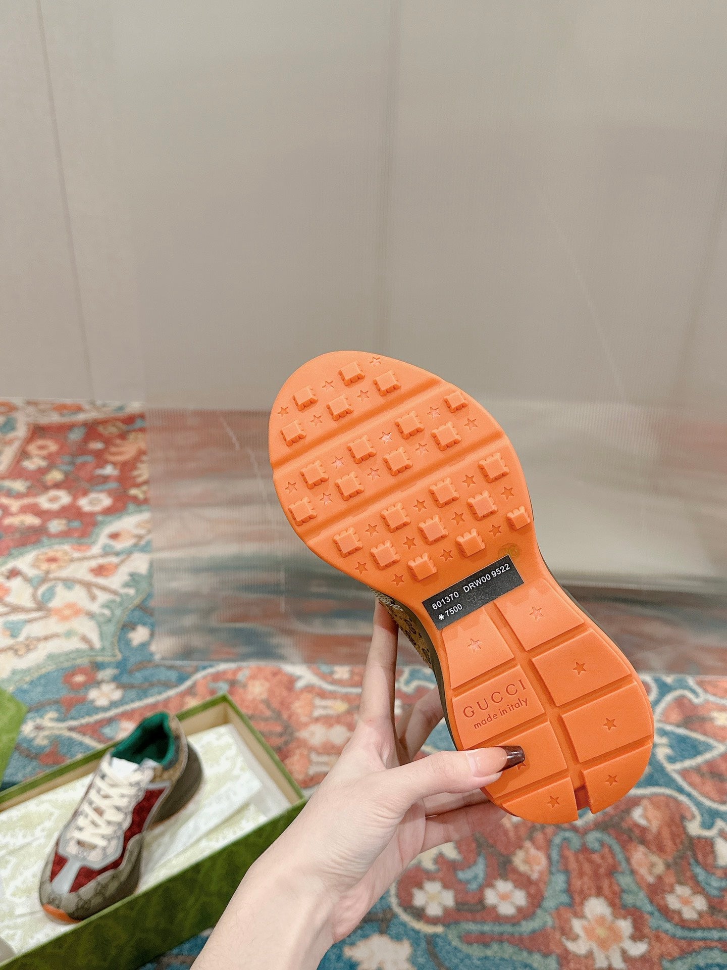 GG RHYTON TRAINER LIGHT GRAY AND SCARLET CALFSKIN