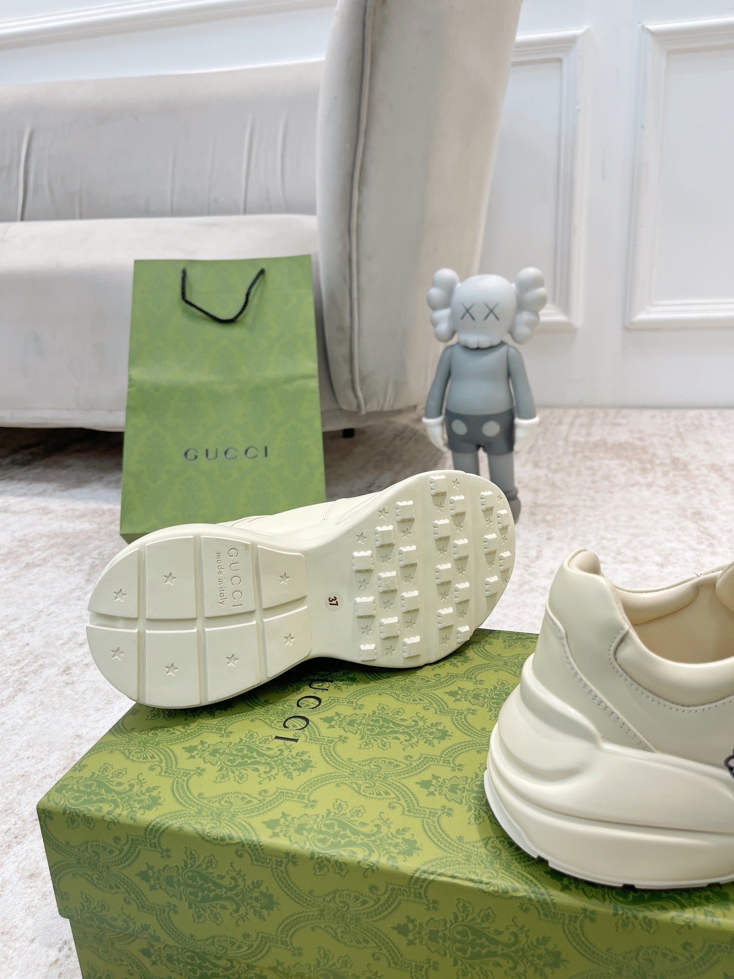 GG RHYTON TRAINER WHITE LAMBSKIN WITH CAT ICON