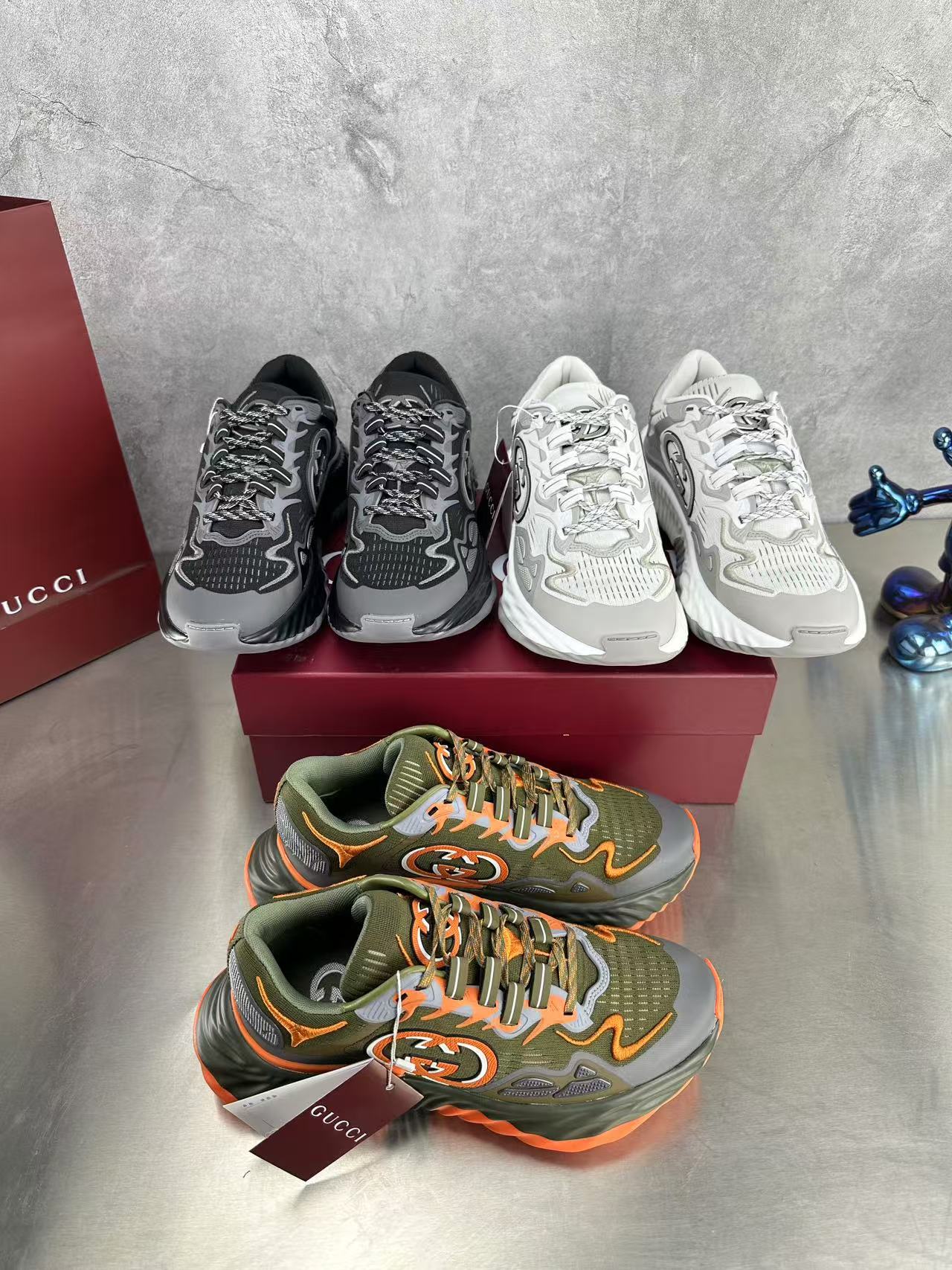 GG RIPPLE SNEAKER IN LIGHT GRAY MIX BLACK LAMBSKIN AND FABRIC