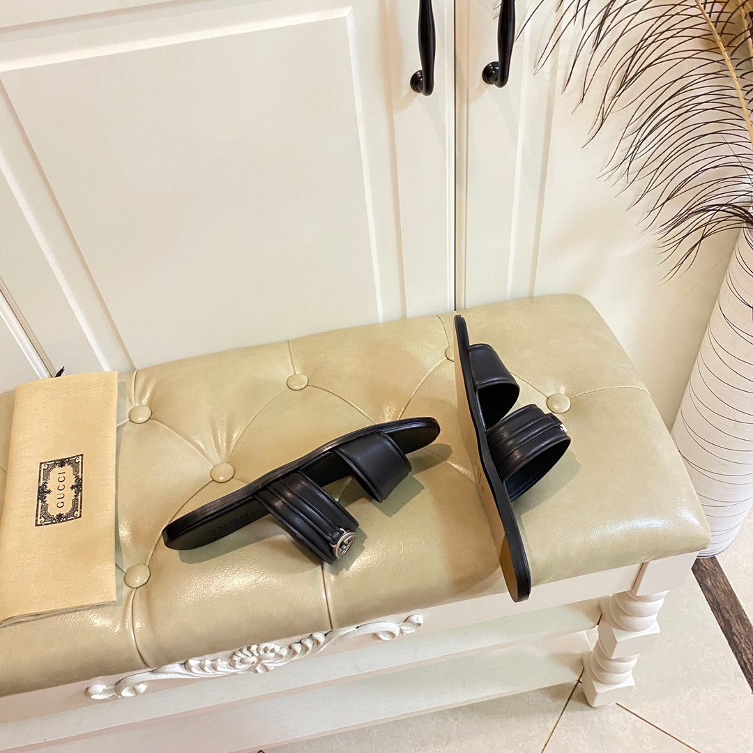 GG SANDAL WITH ROUND INTERLOCKING G IN BLACK CALFSKIN