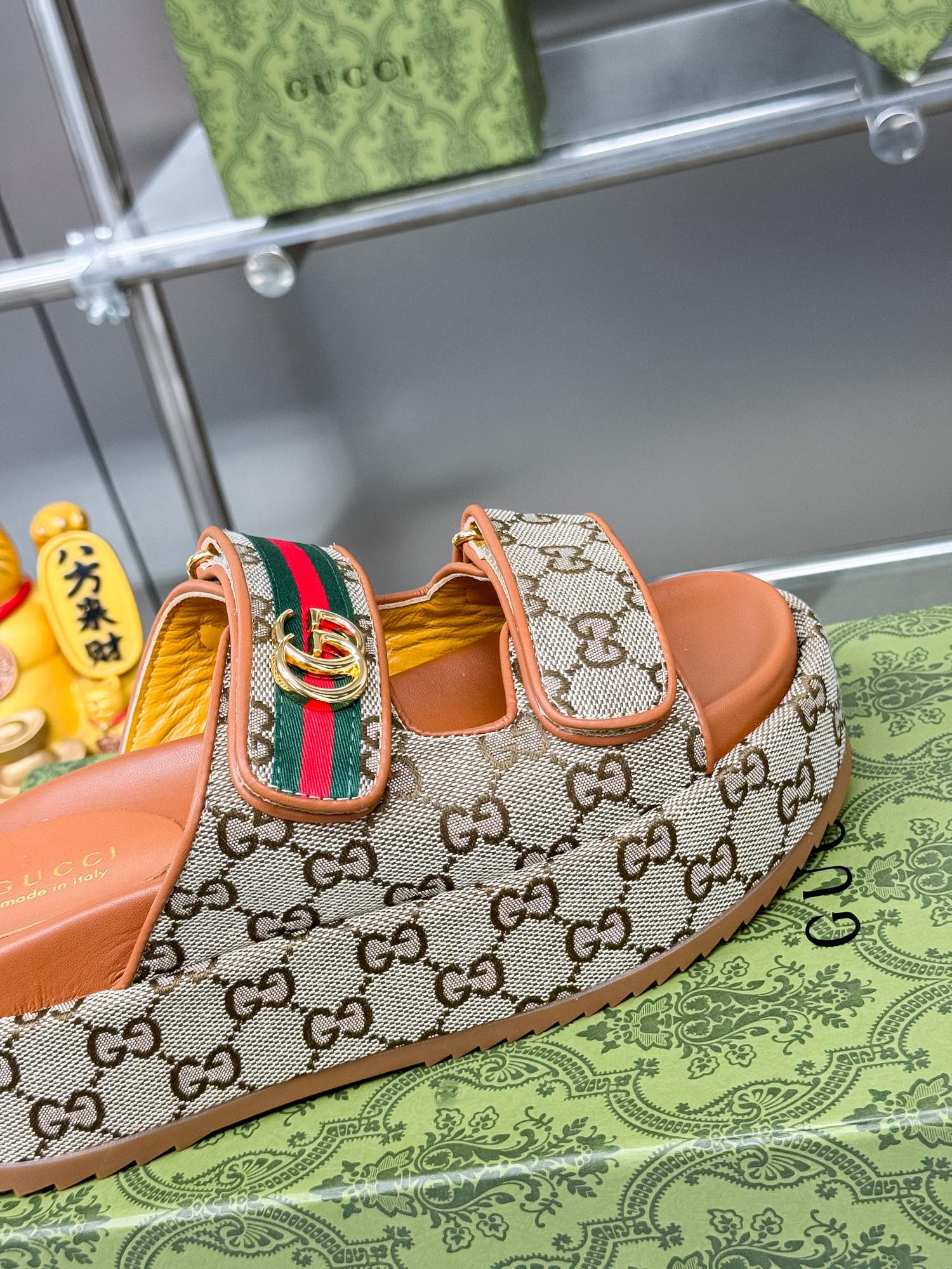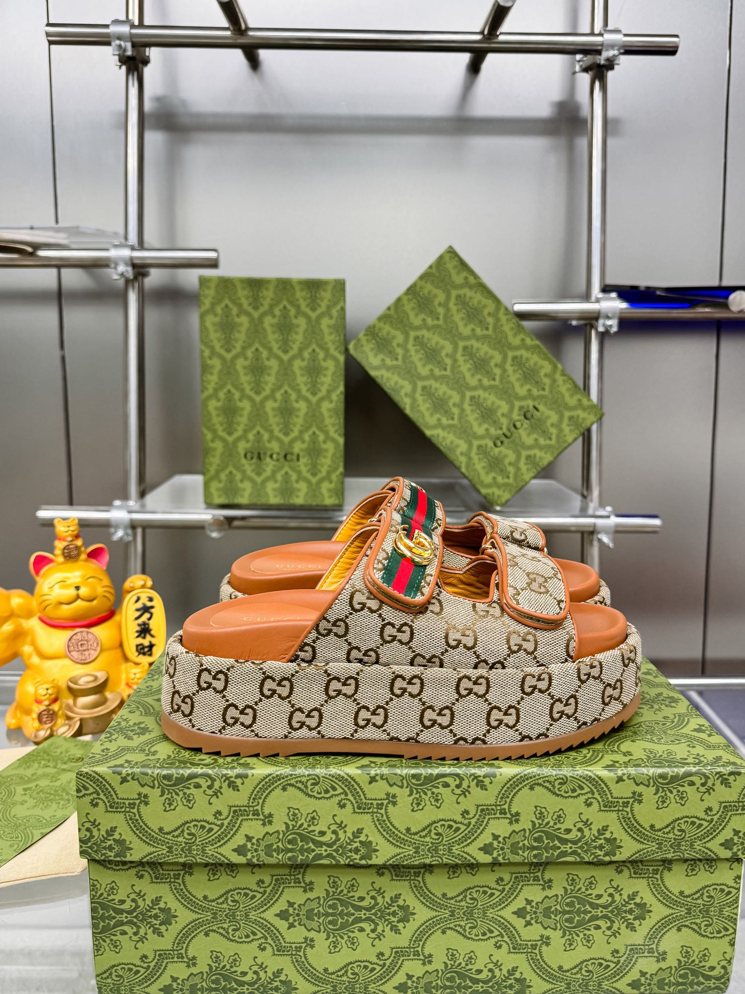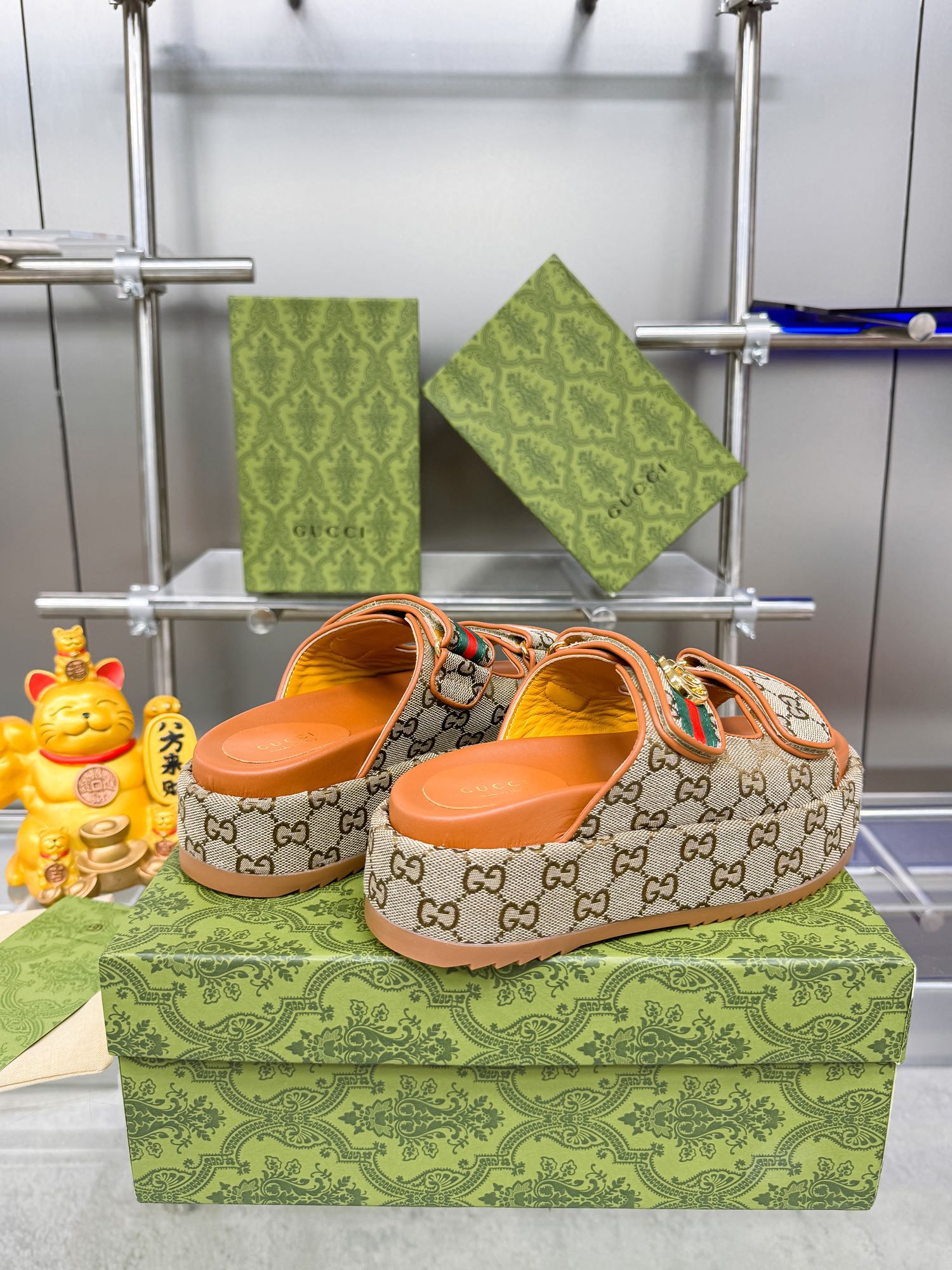GG SANDALS 22 IN ORANGE CALFSKIN AND BEIGE FABRIC WITH GOLD HARDWARE