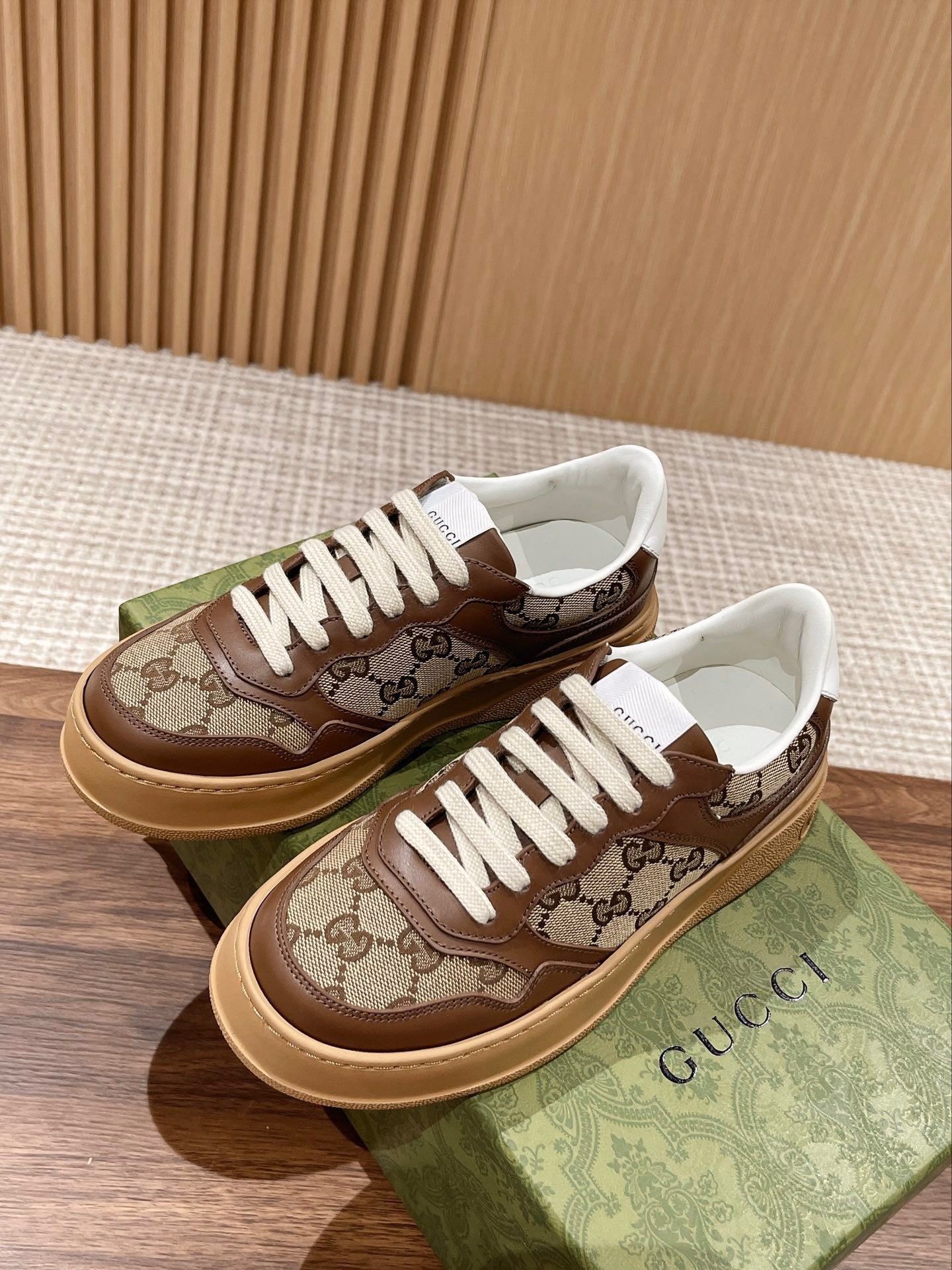 GG SCREENER SNEAKERS IN BROWN CANVAS AND LEATHER
