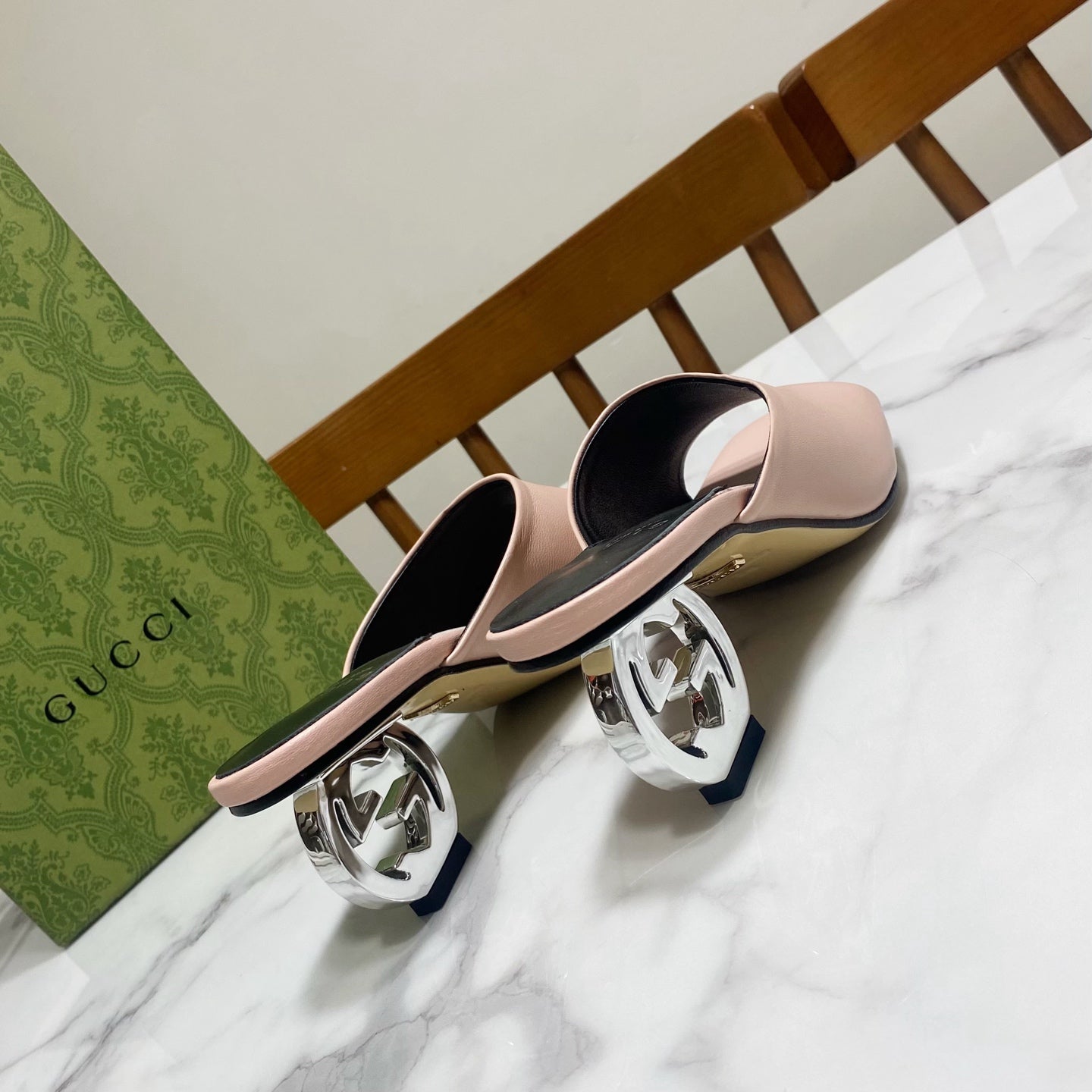 GG SILVER METAL HEEL 65 IN PINK CALFSKIN