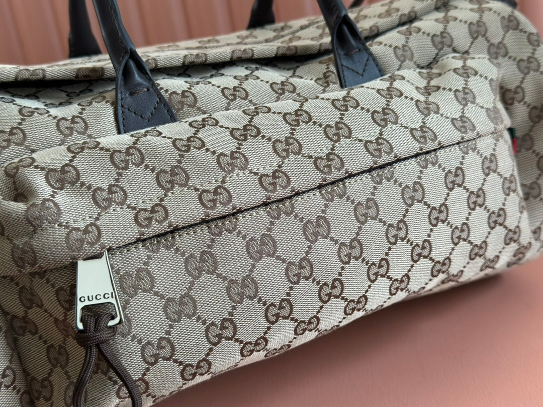 GG SMALL DUFFLE BAG 42 IN BEIGE AND DARK BROWN GG CANVAS
