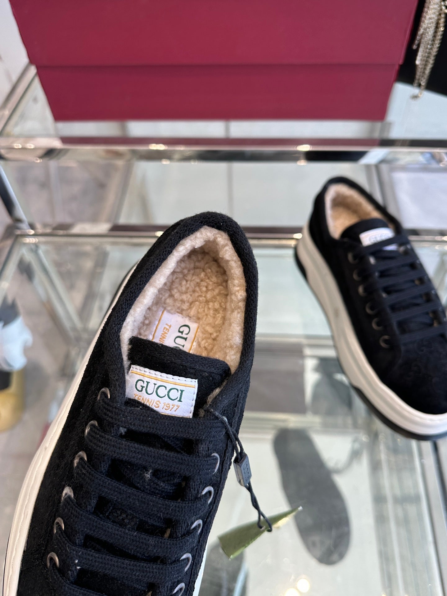 GG SNEAKER IN BLACK CANVAS WITH BEIGE FLEECE LINING