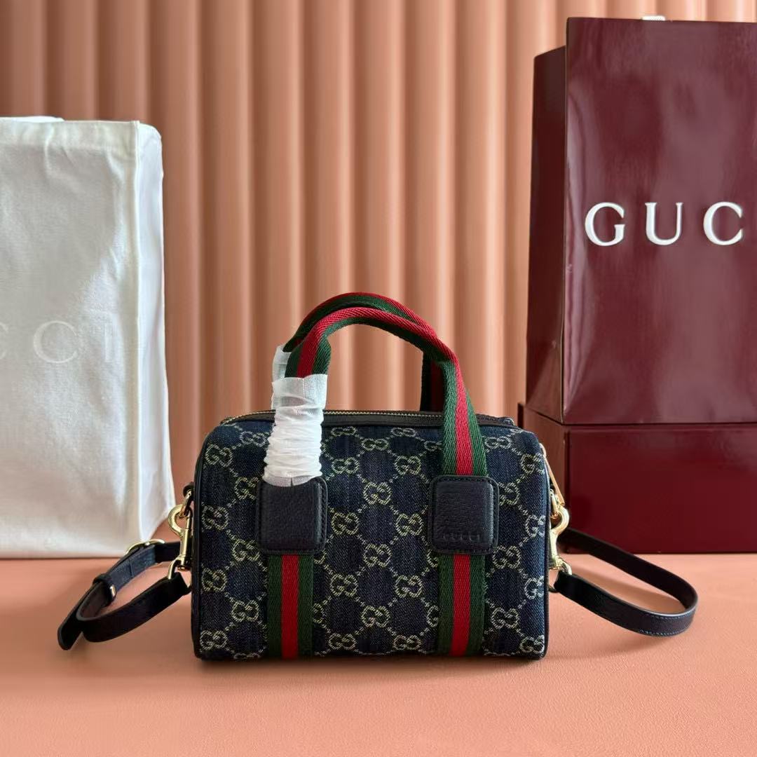 GG TOP HANDLE BAG 20 IN DARK BLUE DENIM MIX CALFSKIN