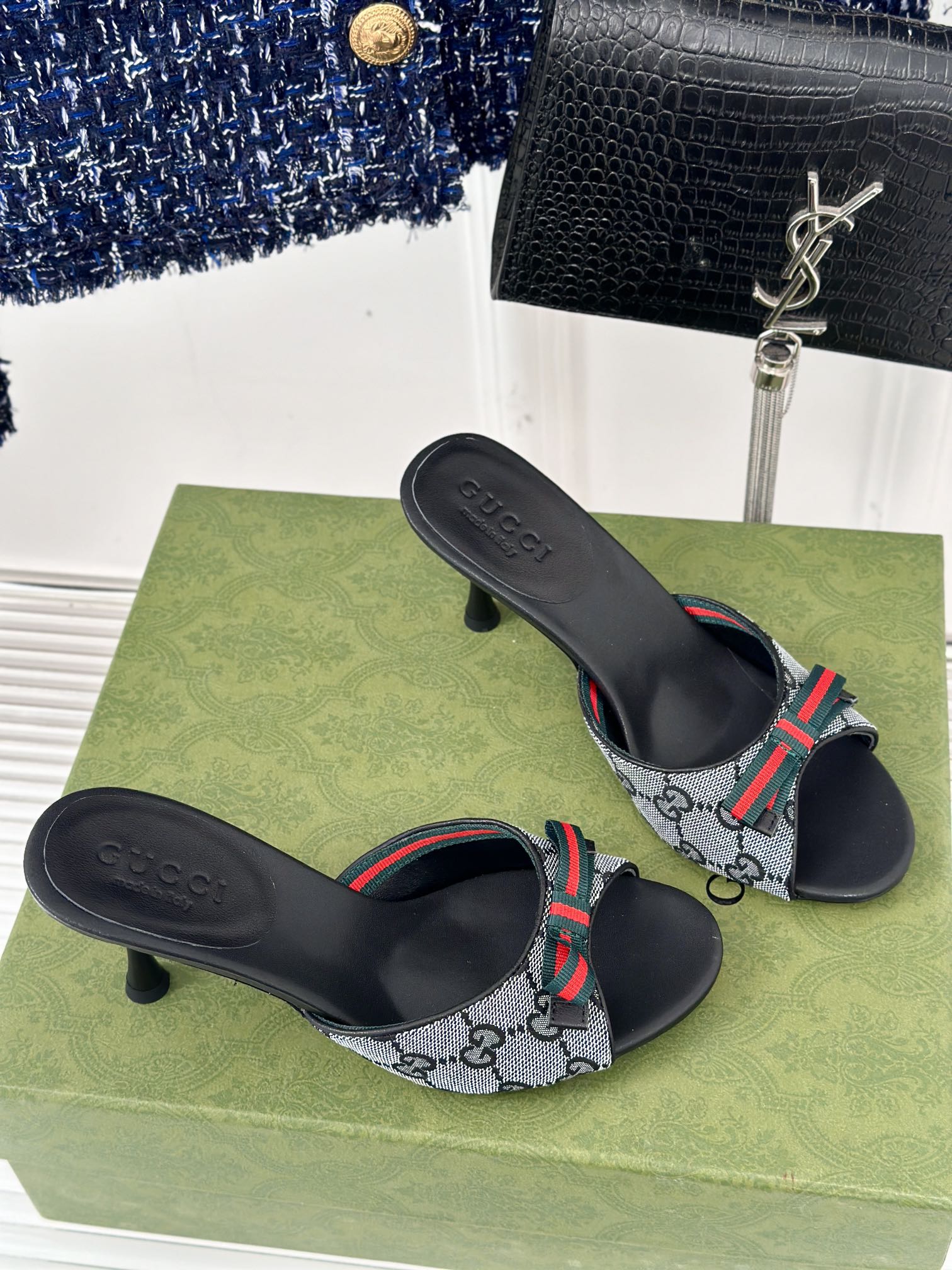 GG Vintage High Heel Slippers Black