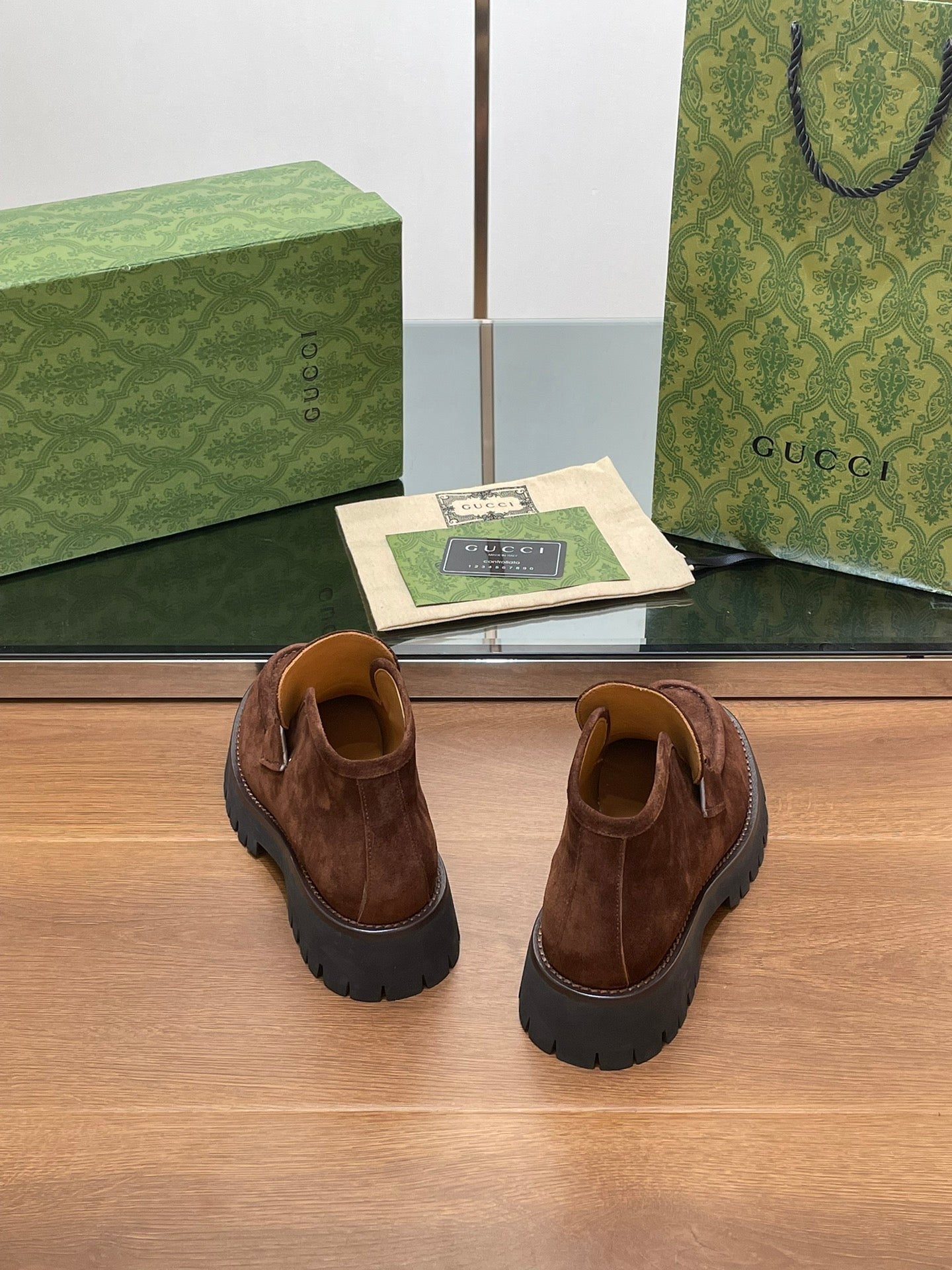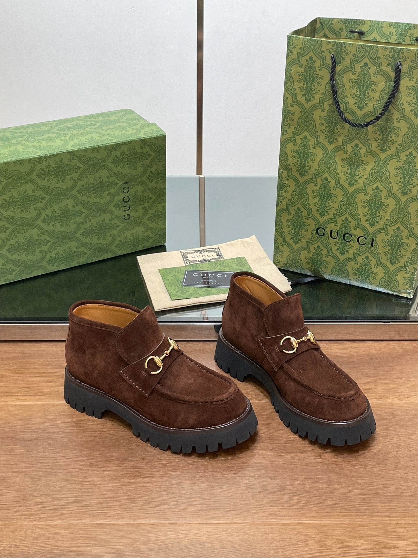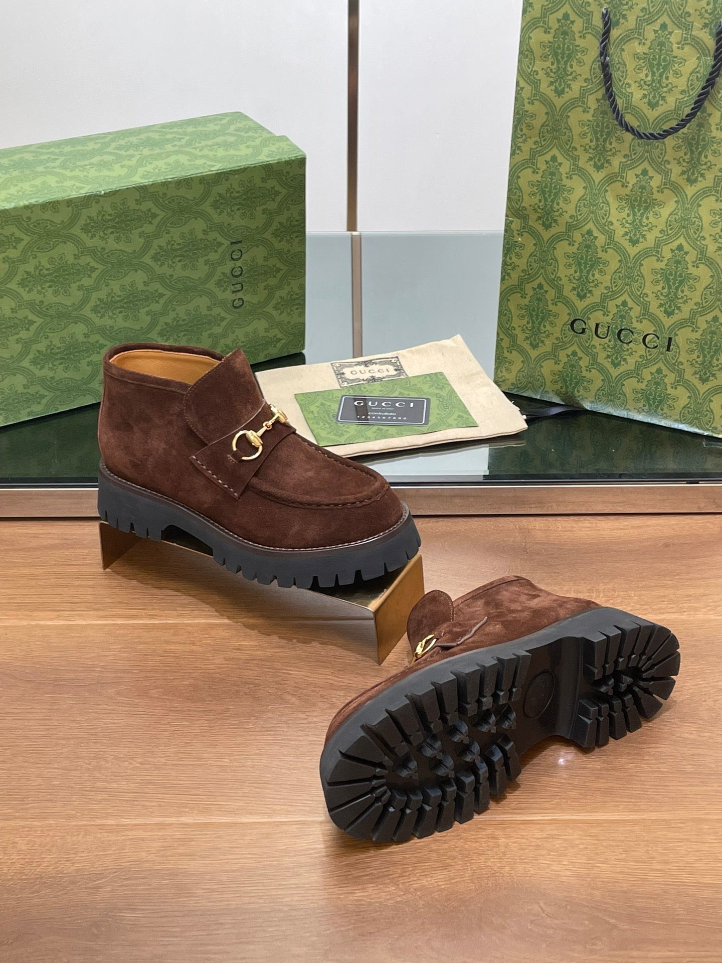 GG WOMEN'S HORSEBIT ANKLE BOOTS 4.5 CM IN DARK BROWN SUEDE