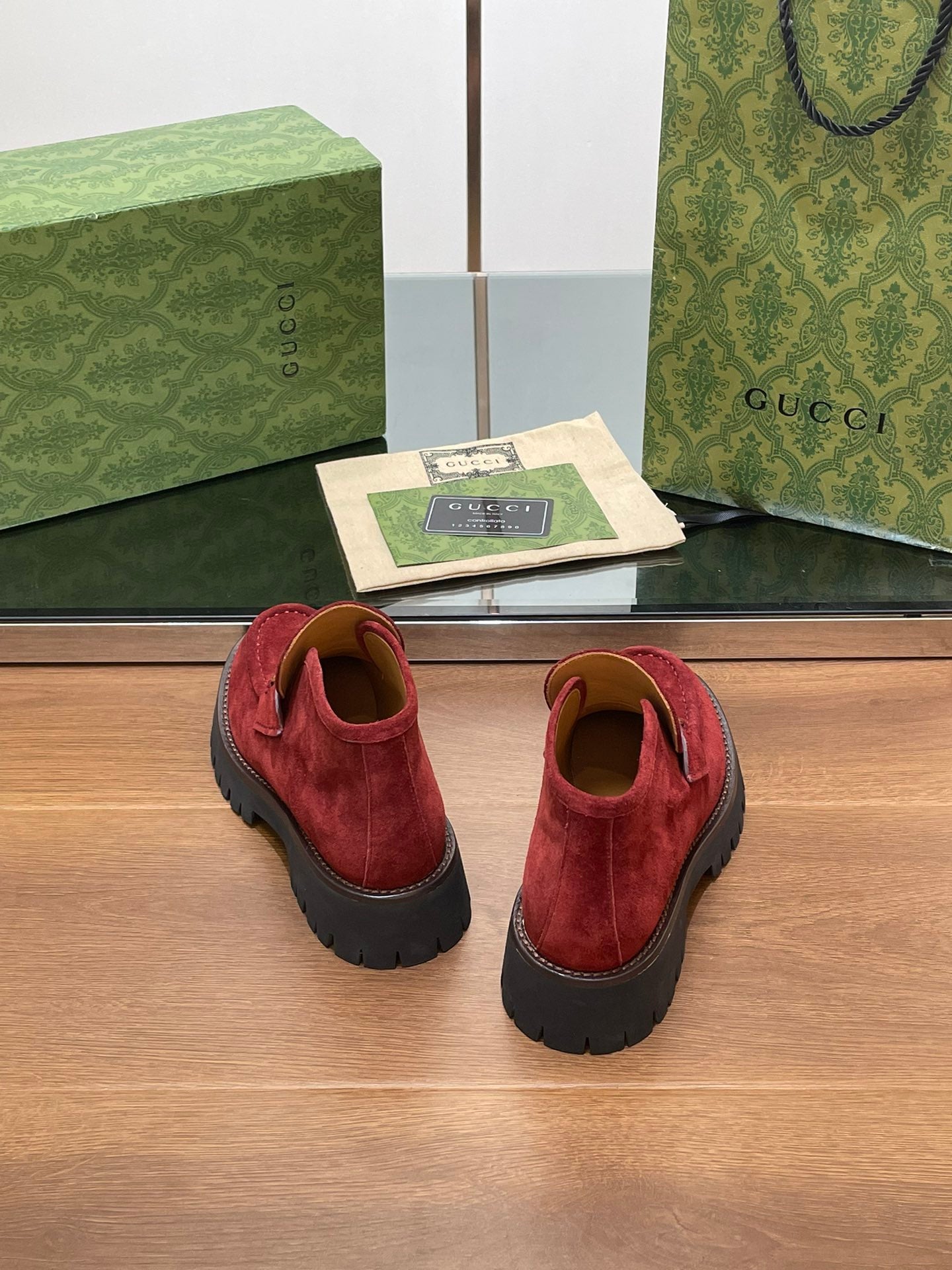 GG WOMEN'S HORSEBIT ANKLE BOOTS 4.5CM IN RED SUEDE
