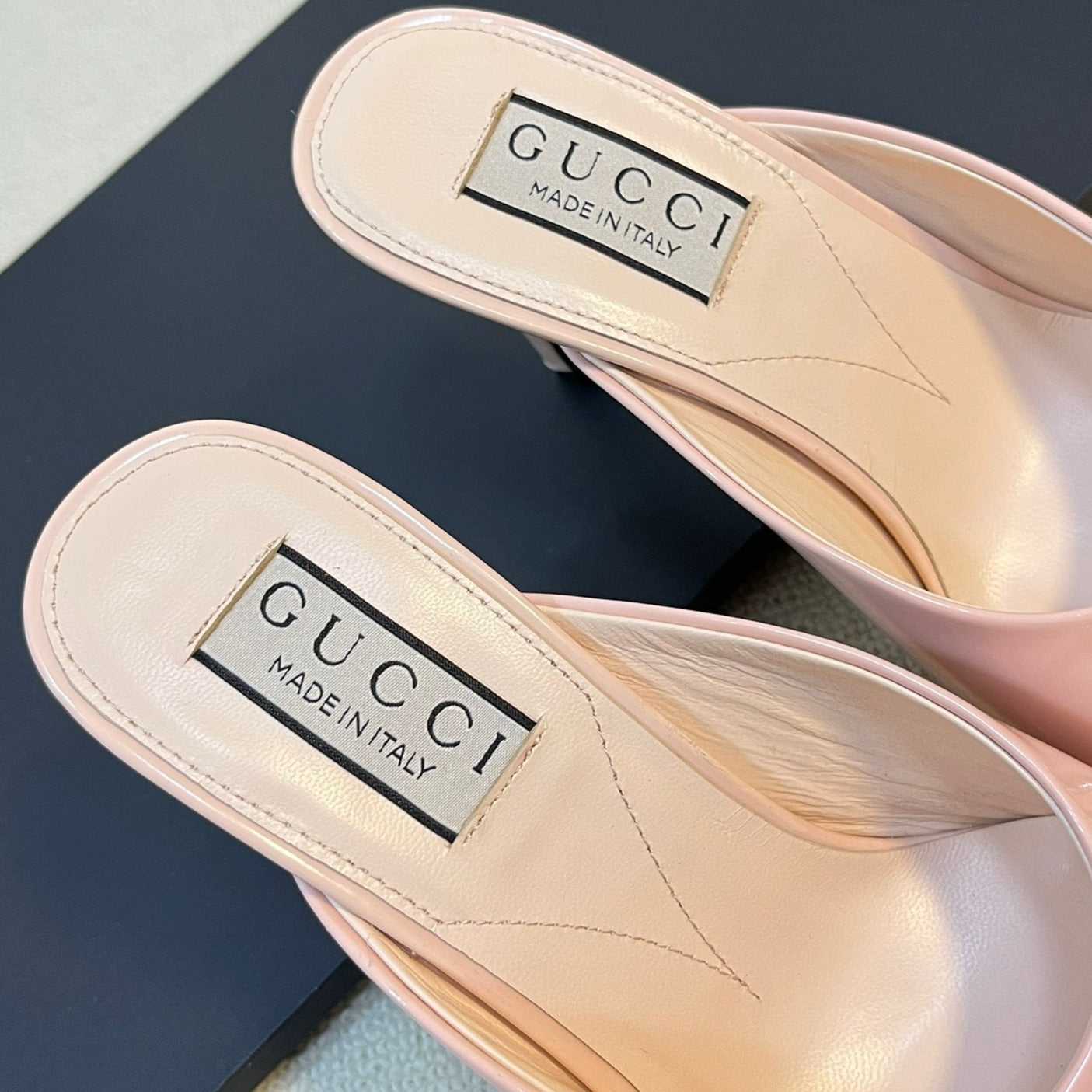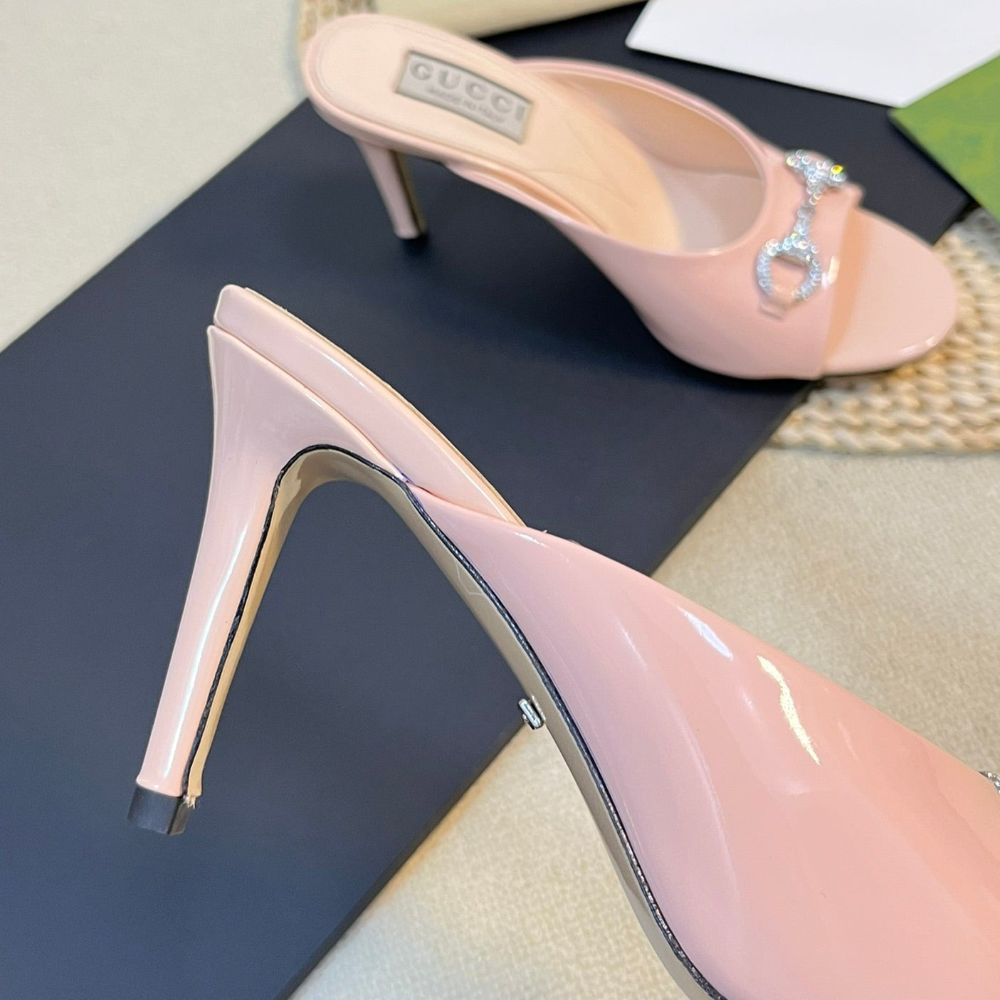 GG Women's Horsebit mid-heel slide sandal in glossy Rose Pink
