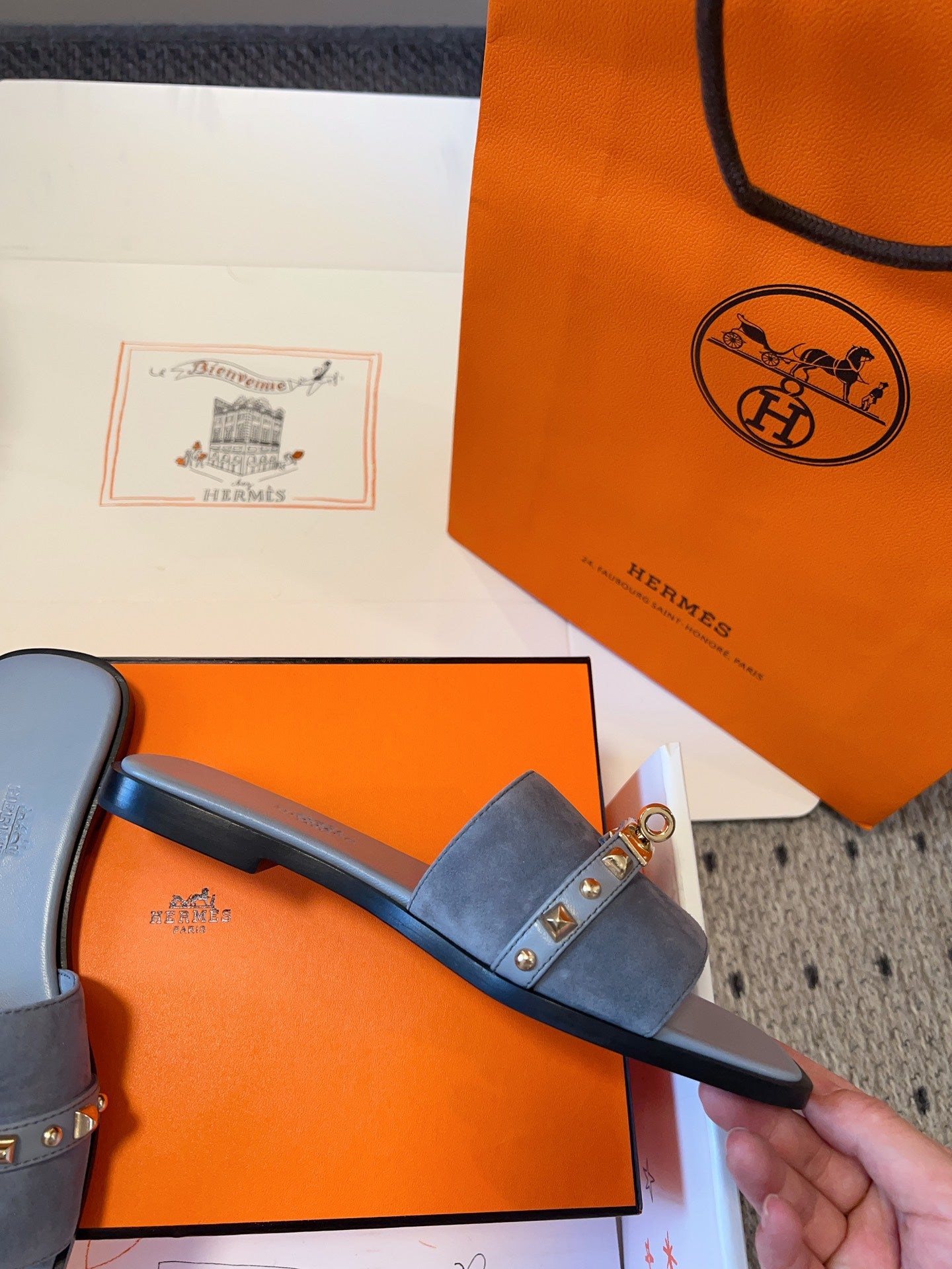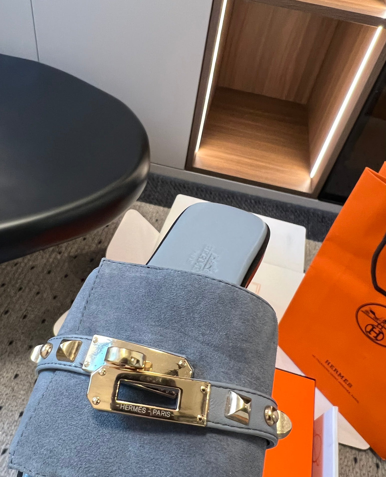 GIULIA FLAT SANDAL IN CERULEAN BLUE SUEDE