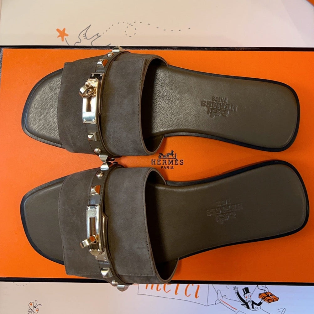 GIULIA FLAT SANDAL IN MOCHA BROWN SUEDE