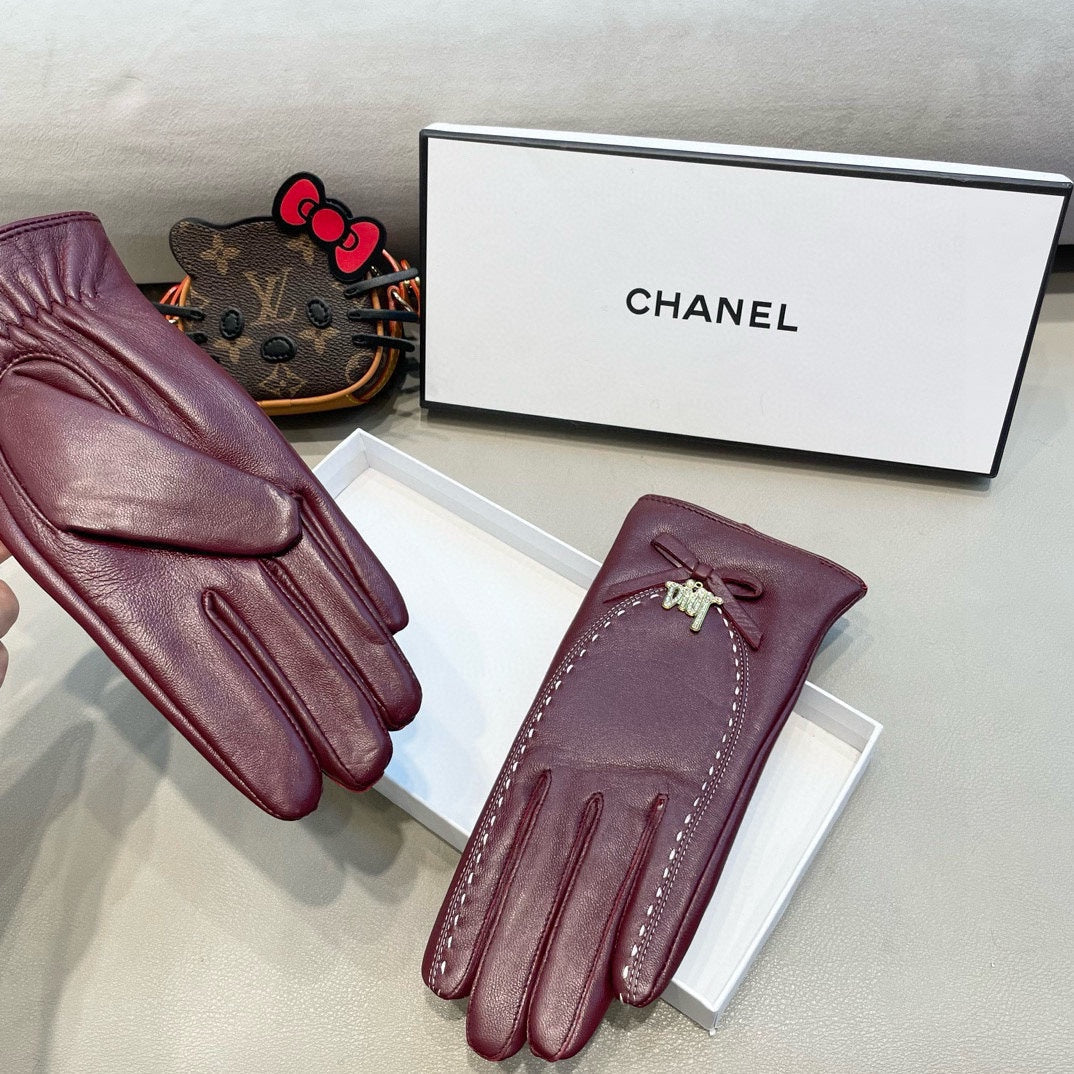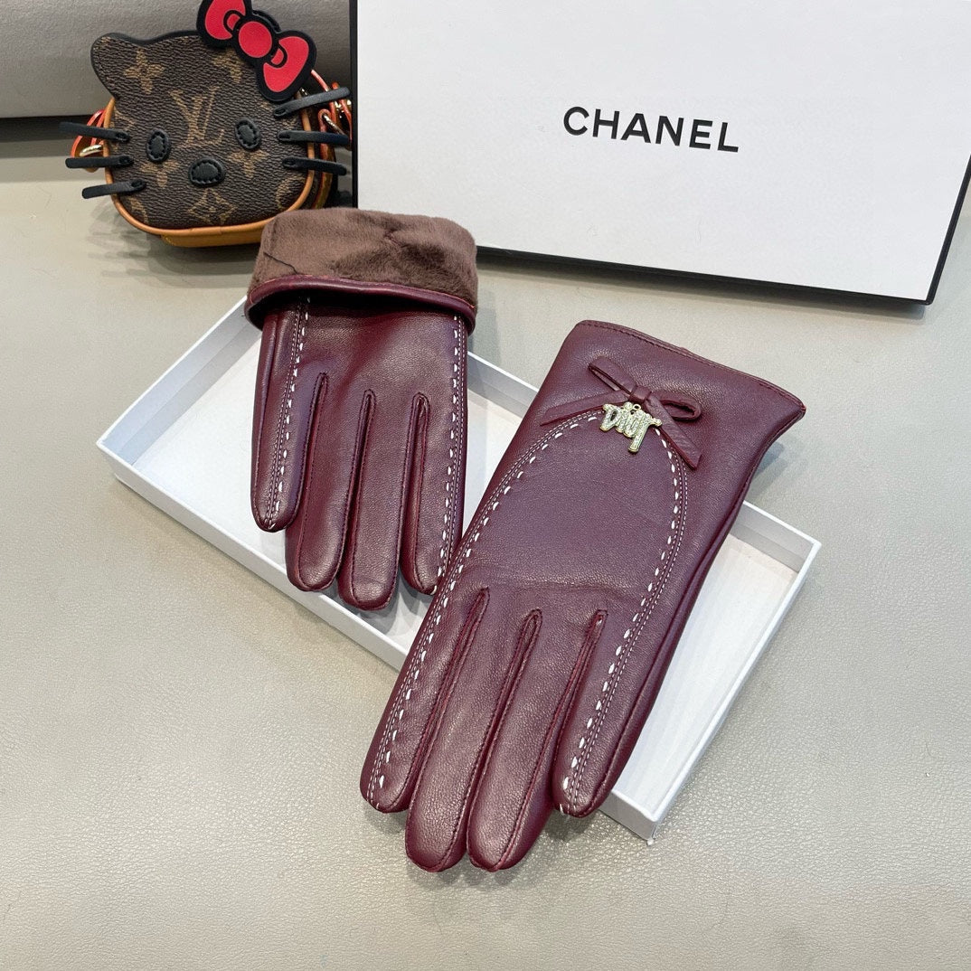 GLOVES ATTACHED BOW IN BURGUNDY RED LAMBSKIN 458529