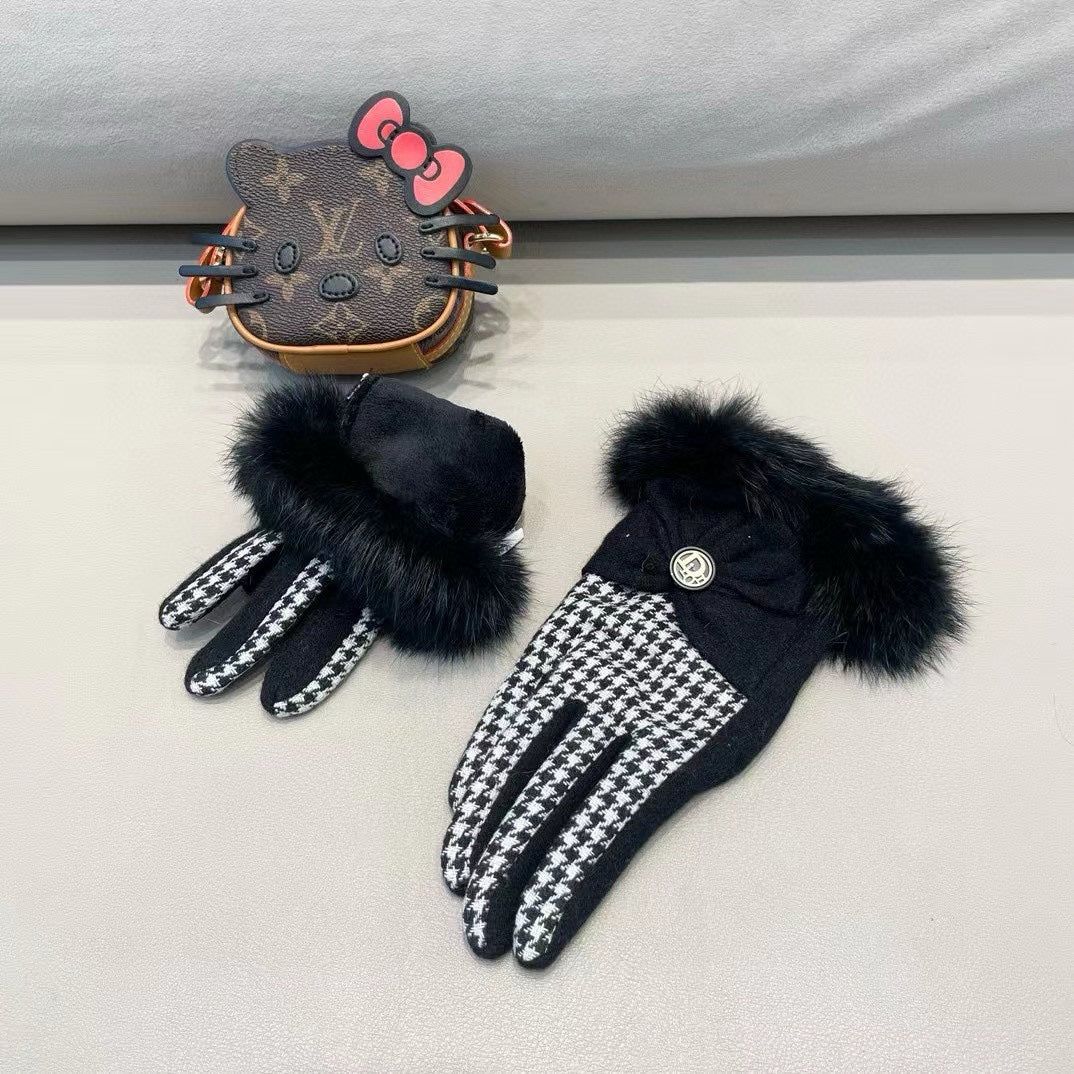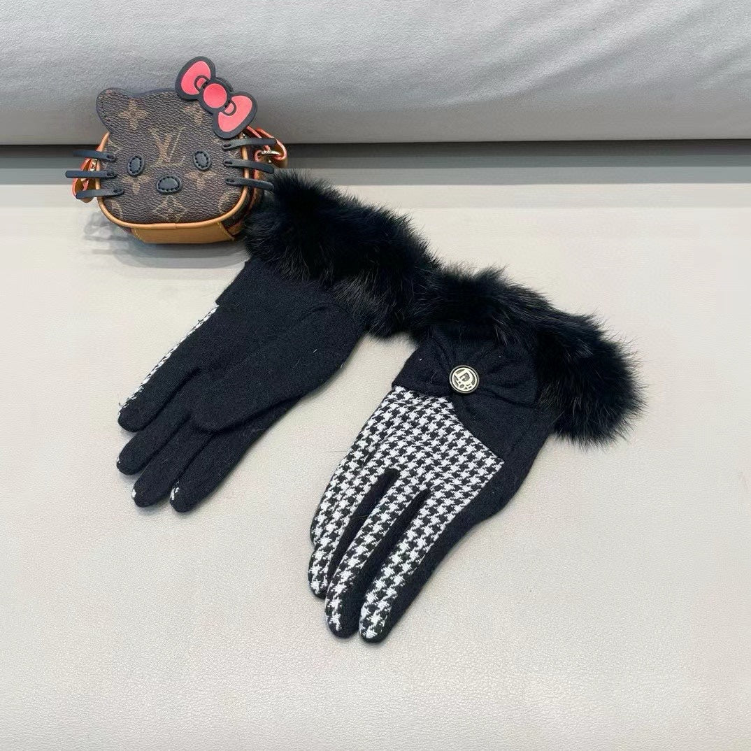GLOVES WITH BOW IN BLACK MIX WHITE WOOL AND RABBIT FUR 453759