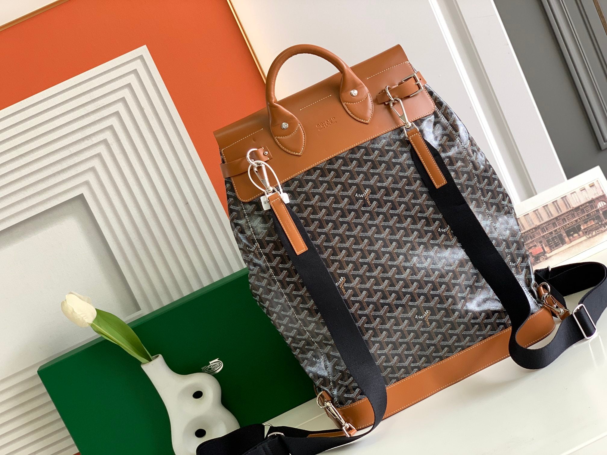 GOYA STEAMER PM BAG 48CM BLACK AND TAN CANVAS