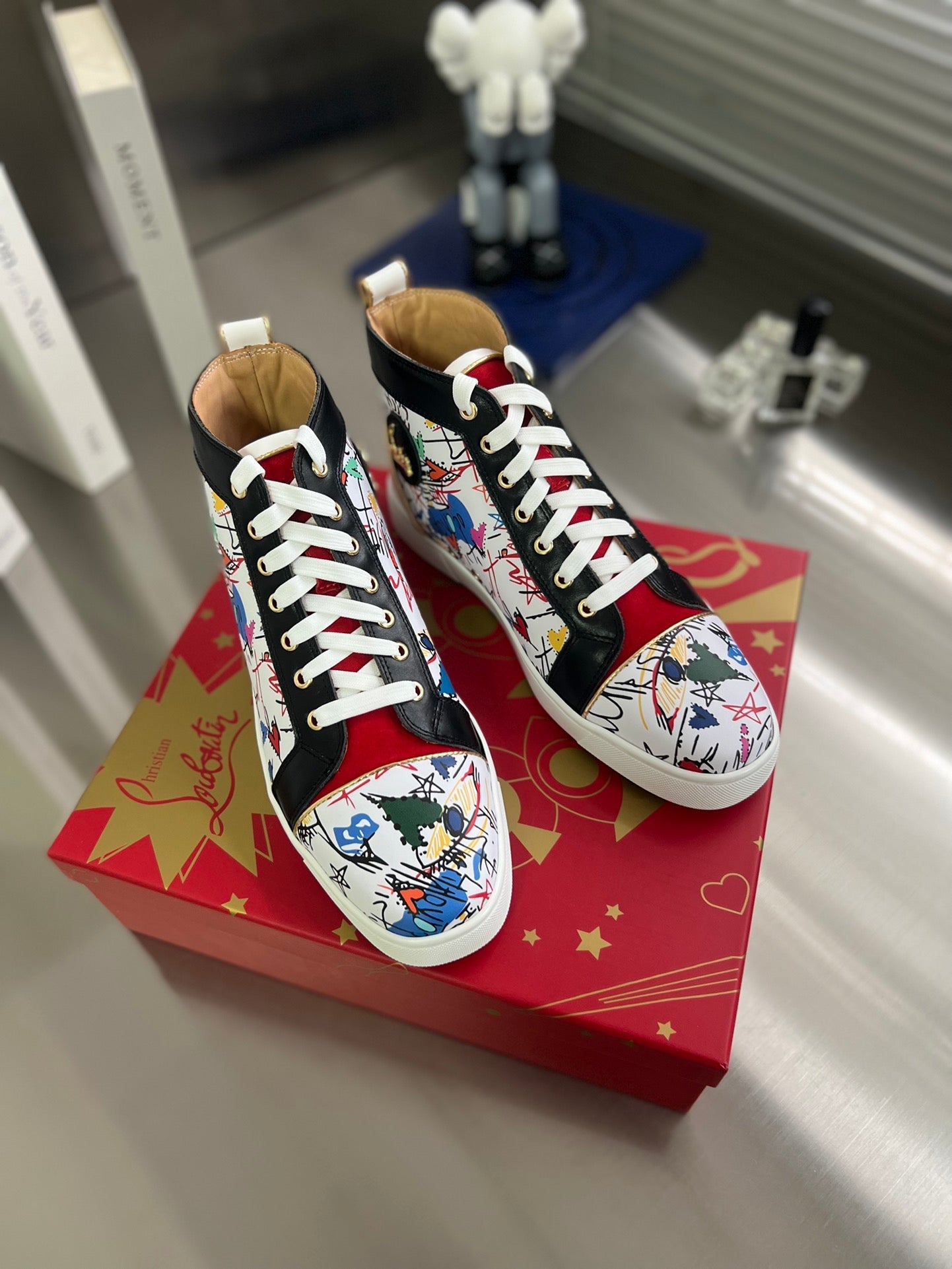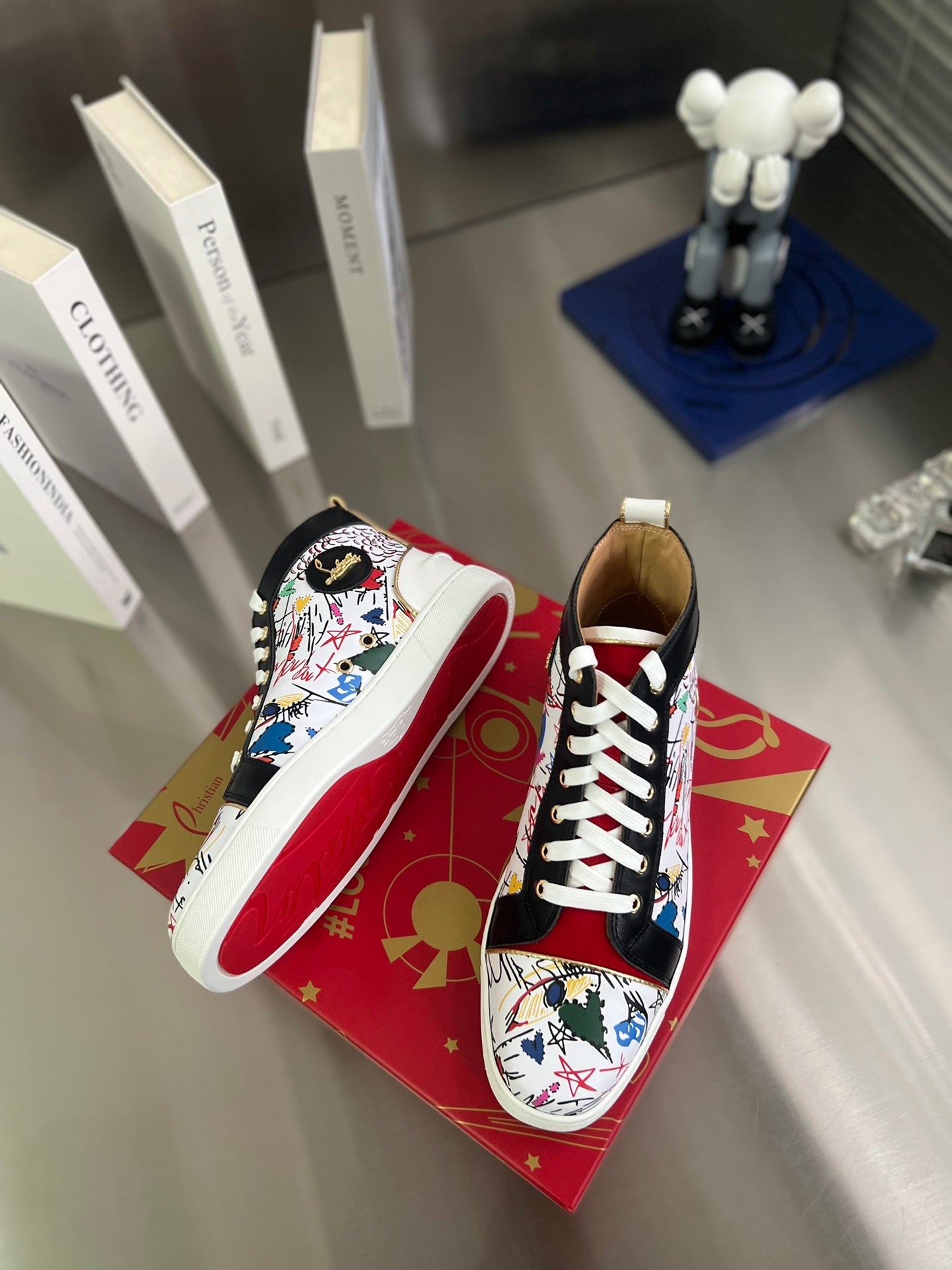 GRAFFITI HIGH-TOP FLAT SNEAKERS IN MULTICOLOR CALFSKIN