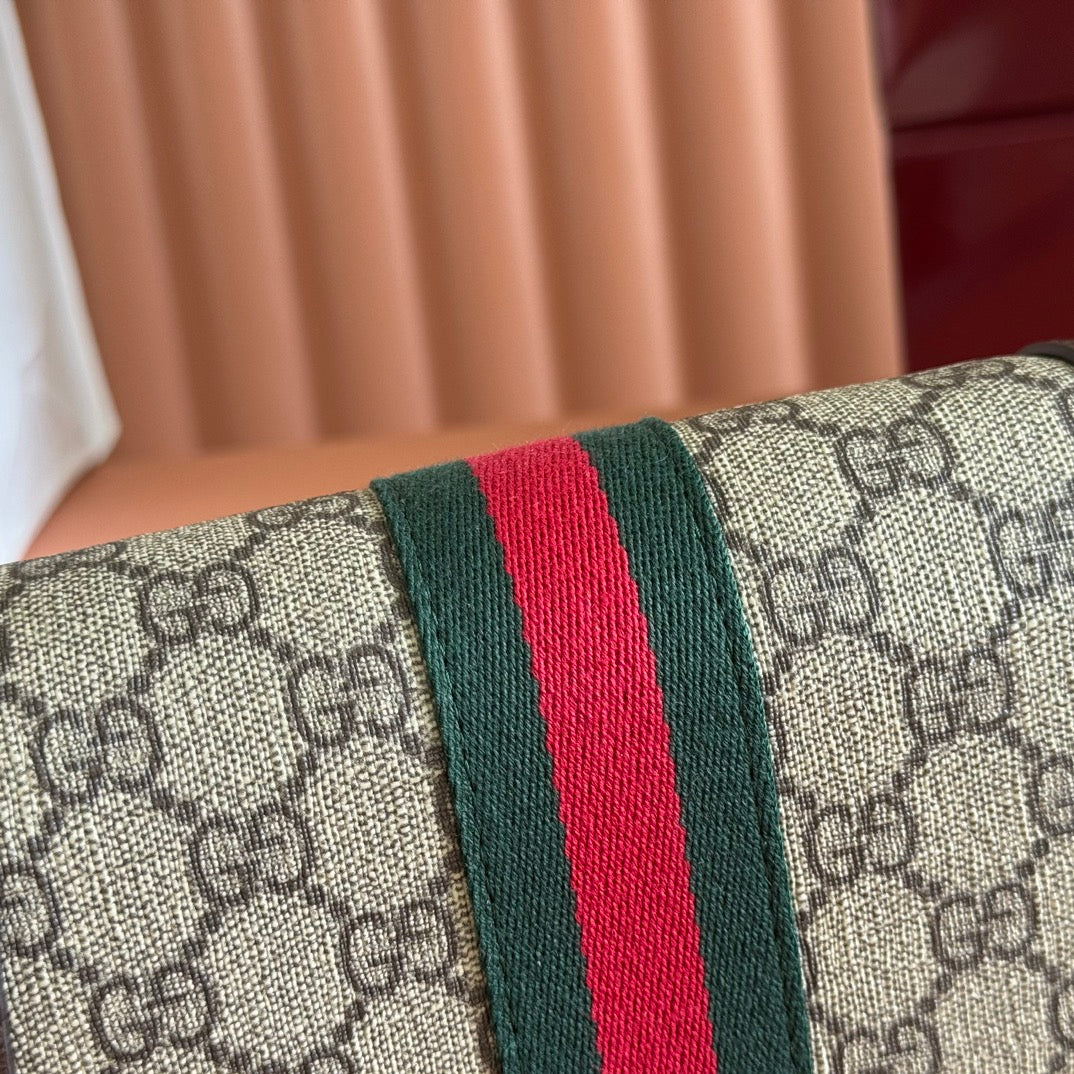 GUCCI 25S OPHIDIA BAG 18 IN BEIGE CANVAS AND BROWN CALFSKIN SILVER HARDWARE