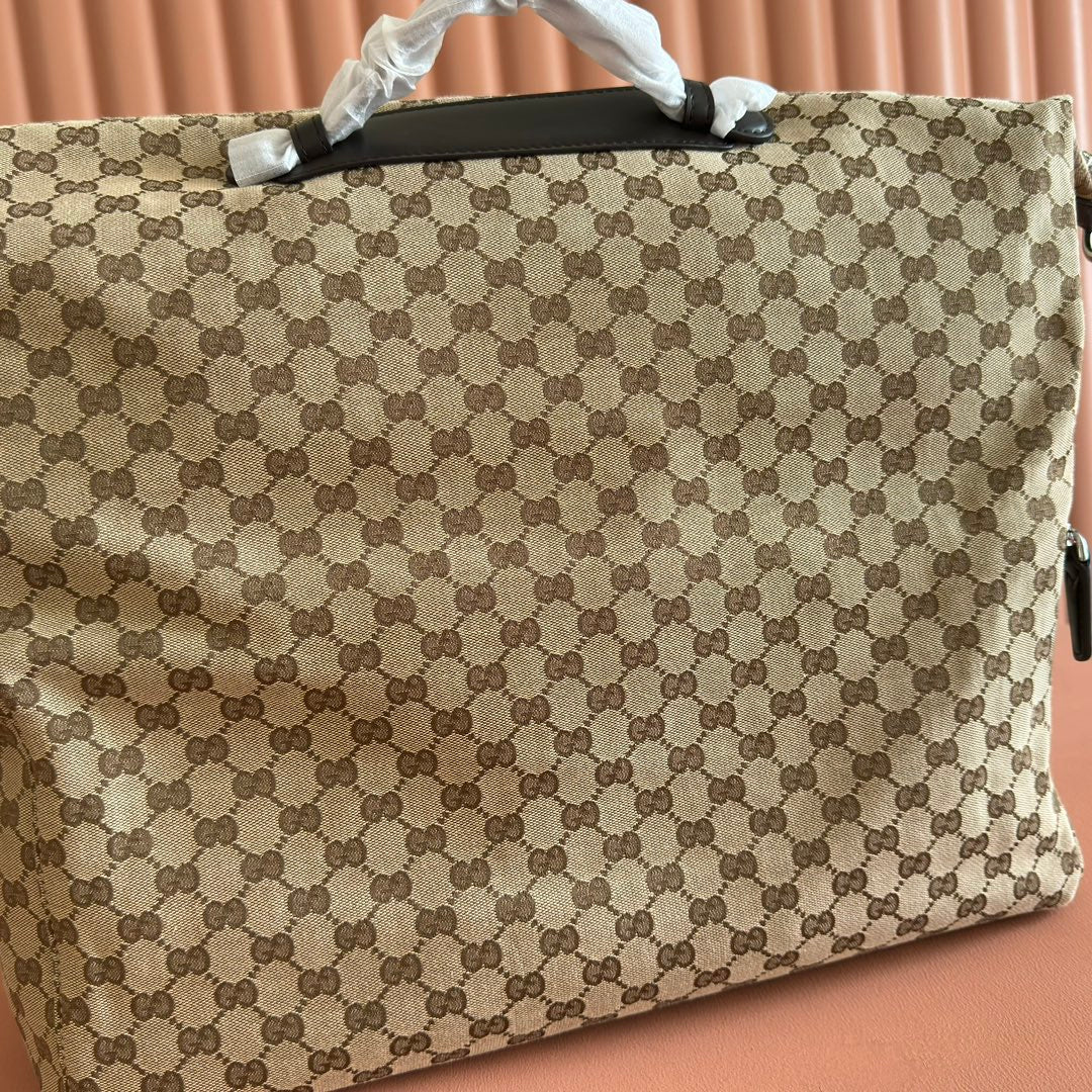 GUCCI 25S OPHIDIA MEDIUM DUFFLE BAG 44 IN BEIGE CANVAS AND BROWN CALFSKIN