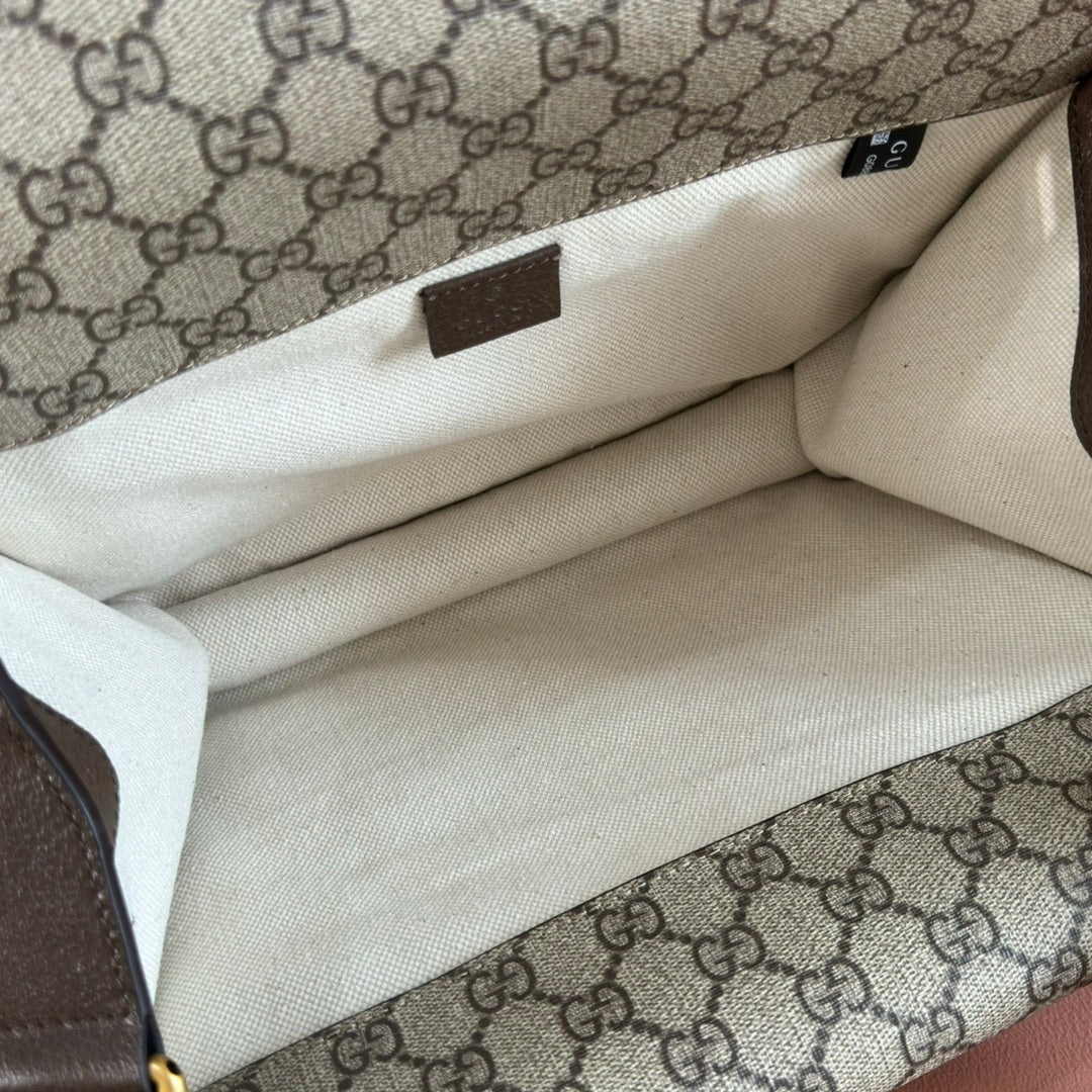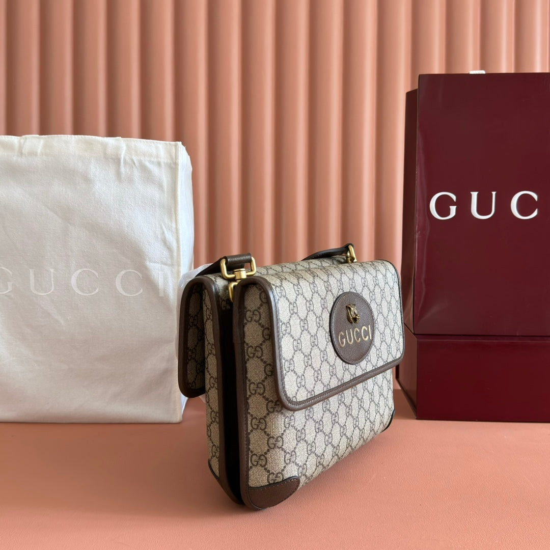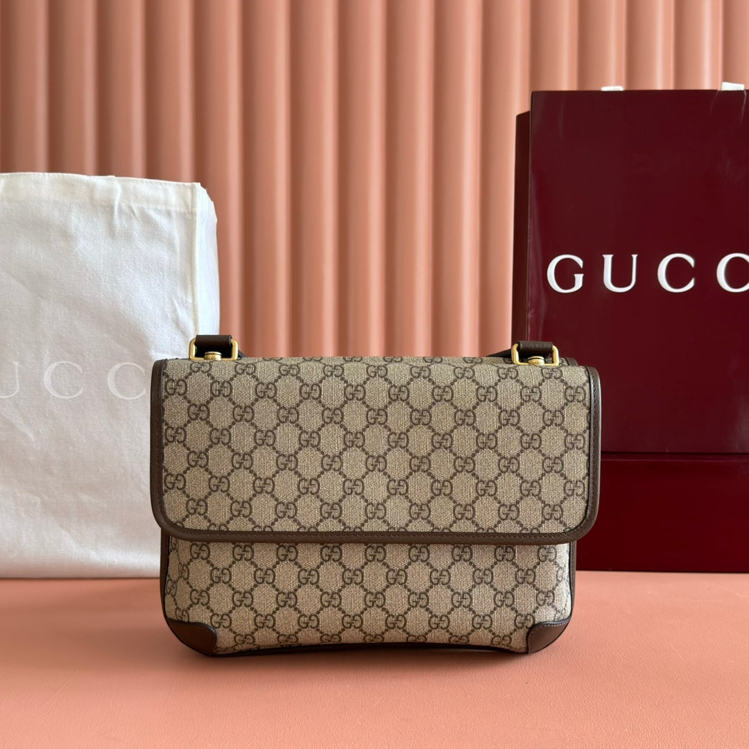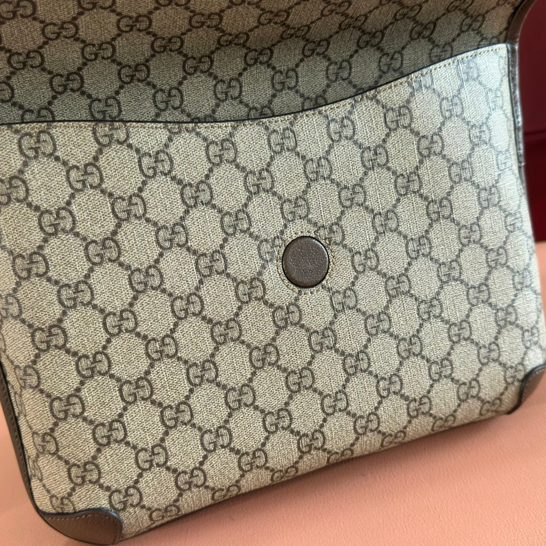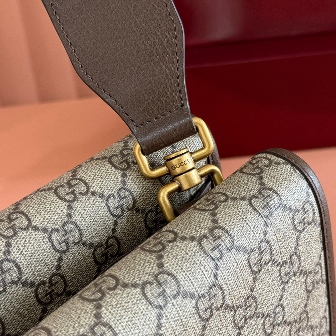 GUCCI NEO VINTAGE TIGER HEAD LARGE CROSSBODY BAG 30 IN CANVAS BROWN LEATHER TRIM