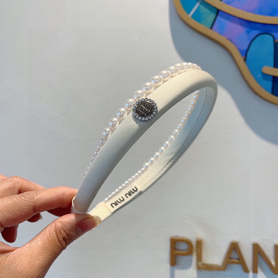 HAIR BAND IN WHITE COTTON ATTACHED PEARL CHAIN 418900