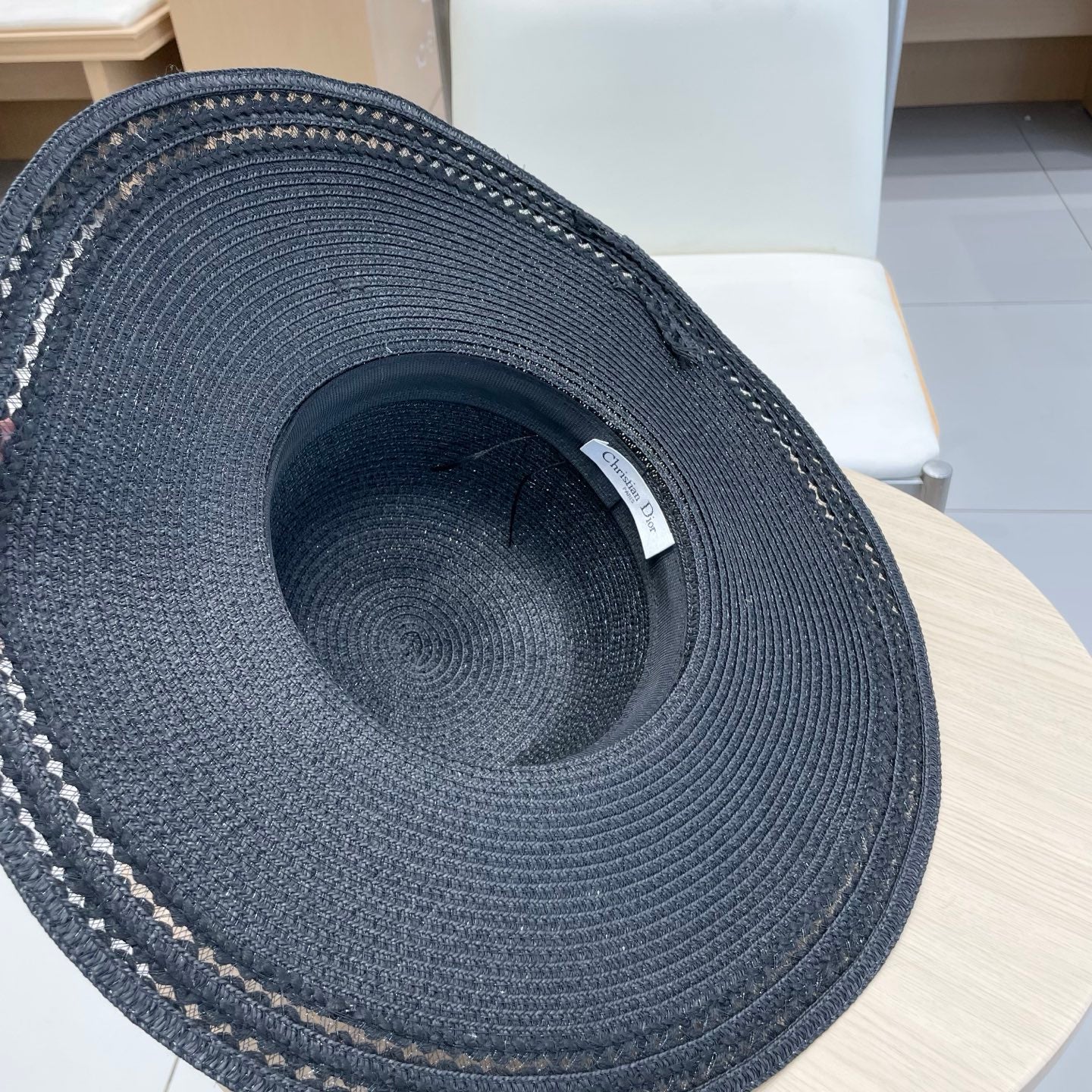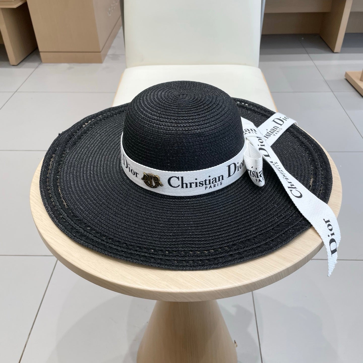 HAT IN BLACK RAFFIA WIDE-BRIM MIX BIG WHITE BOW