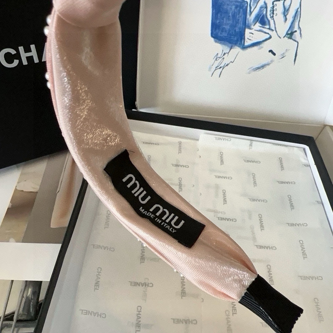 HEADBAND ATTACHED BEADED IN LIGHT PINK SATIN 427356