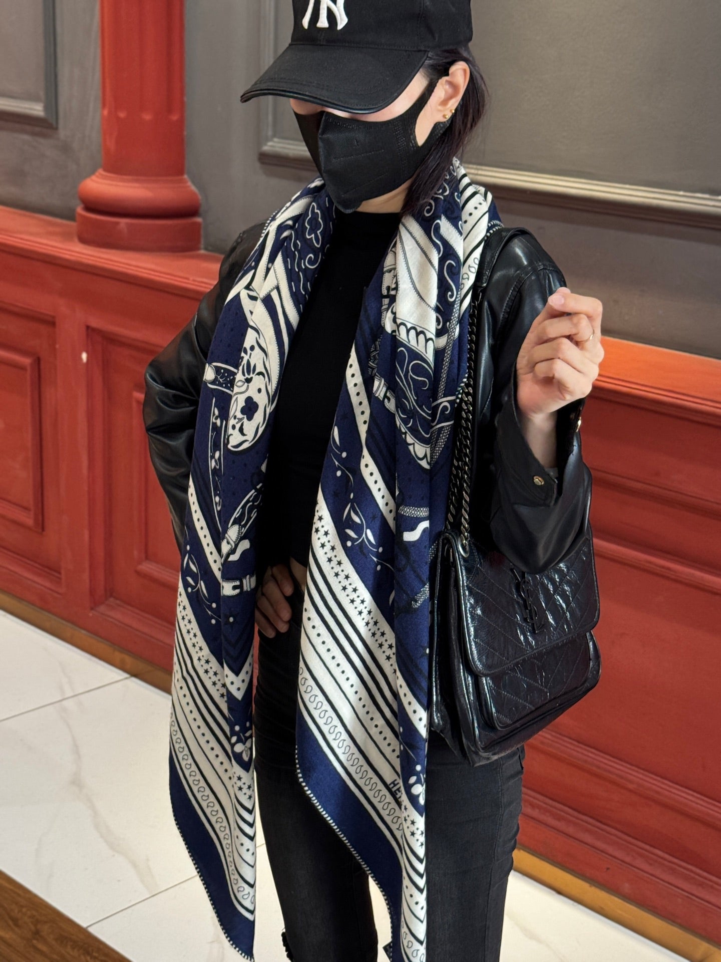 HERMES 25S SCARF 140 IN CASHMERE SILK 727315