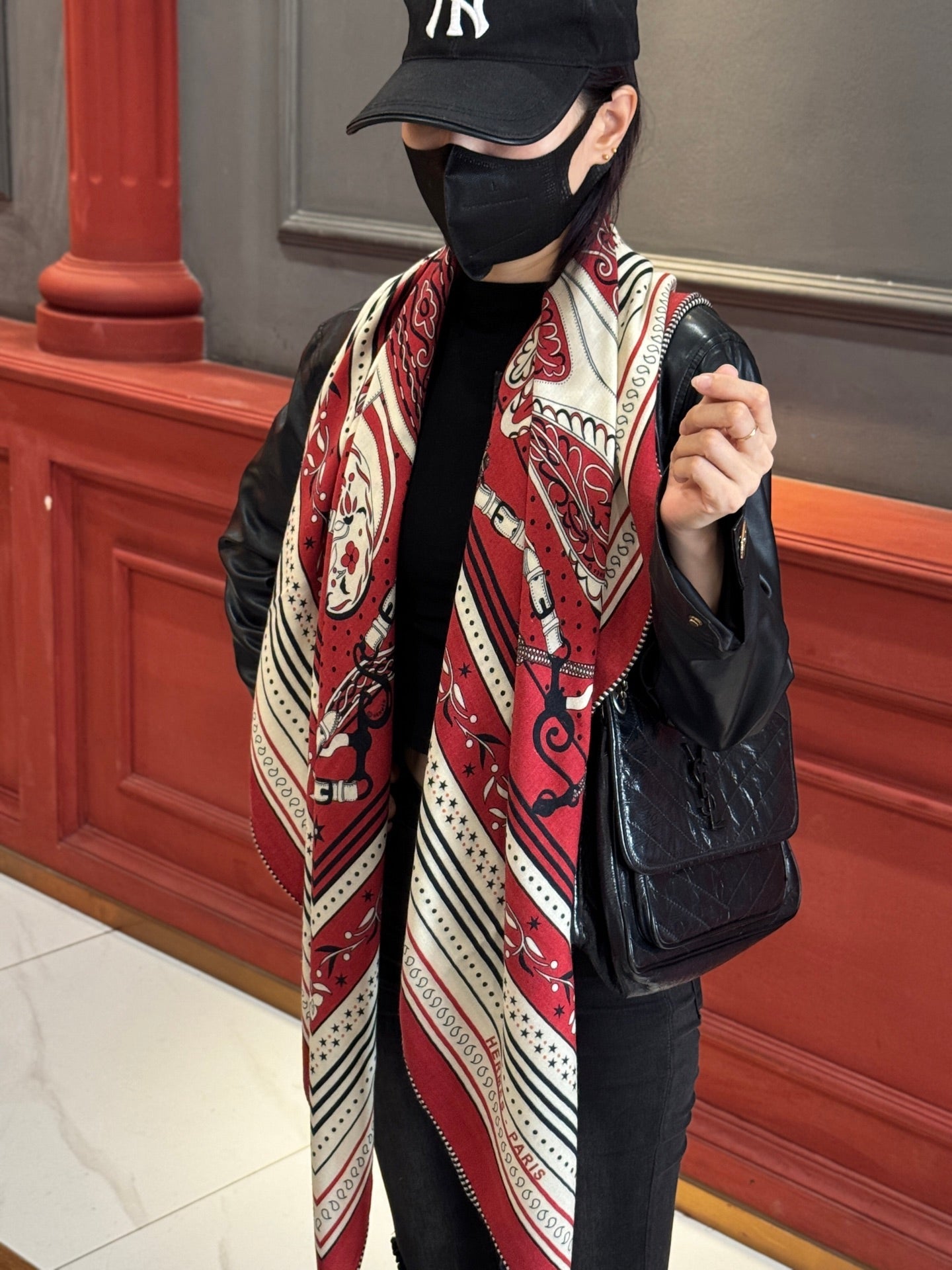 HERMES 25S SCARF 140 IN CASHMERE SILK 727317