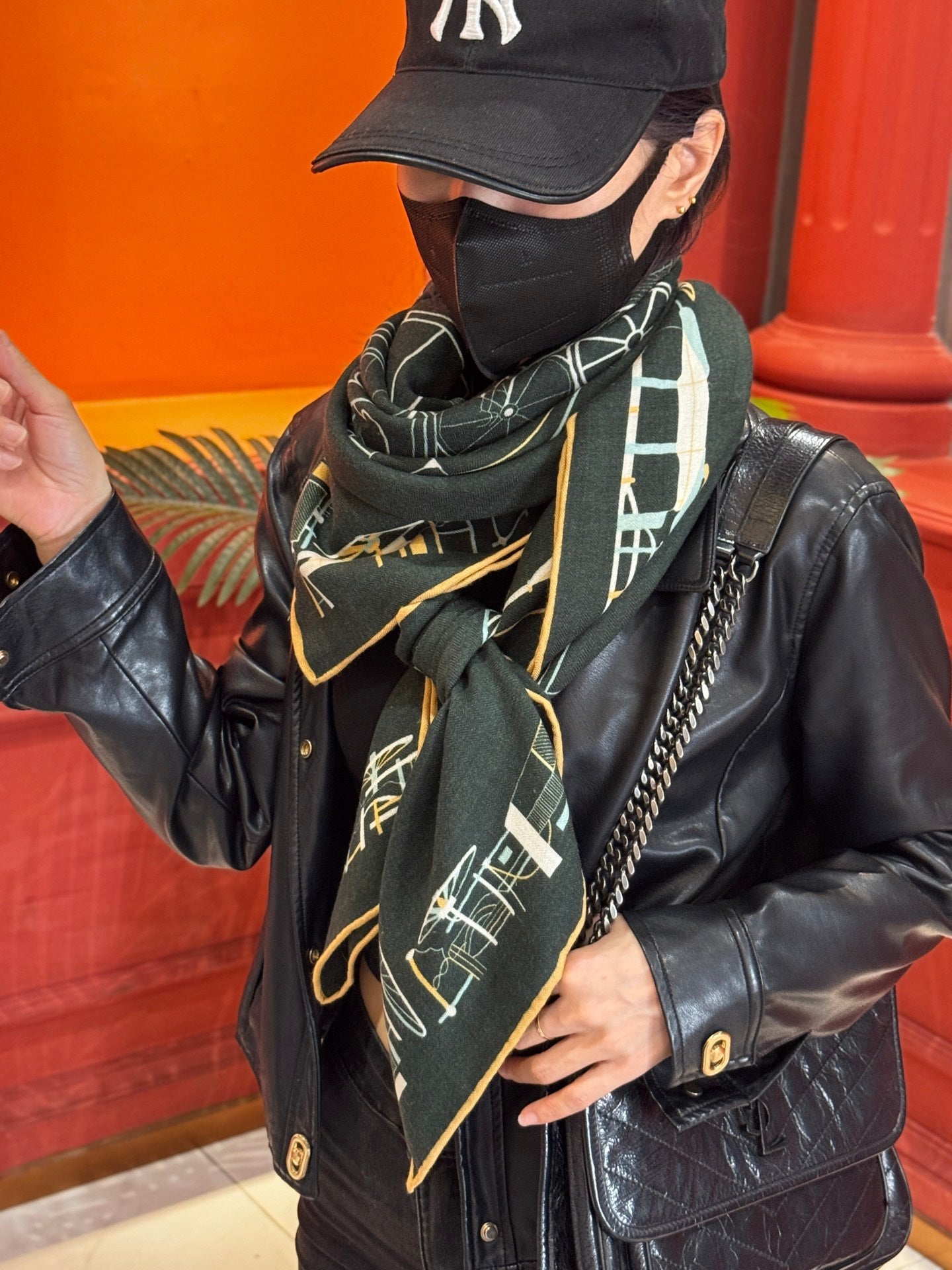 HERMES 25S SCARF 140 IN CASHMERE SILK 727320