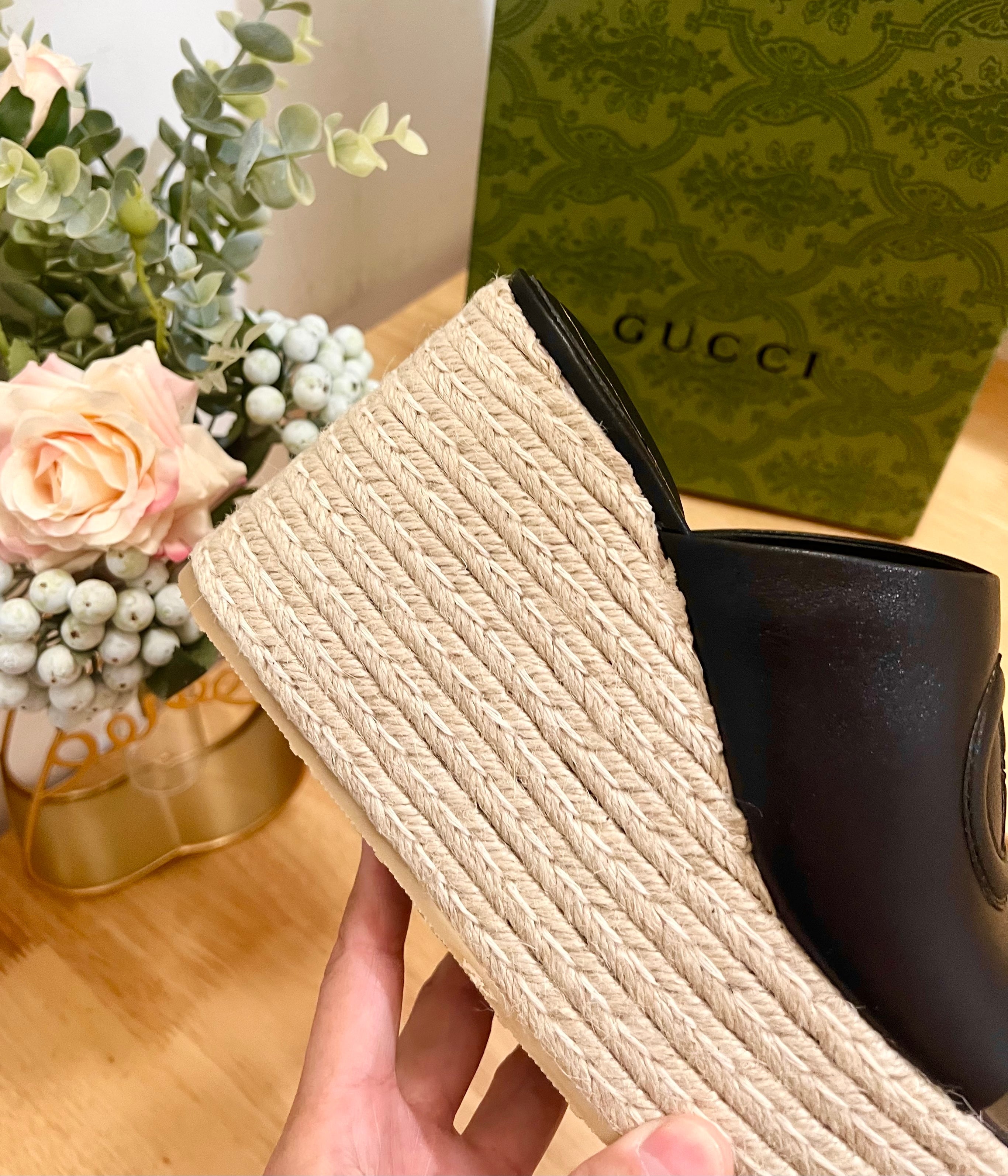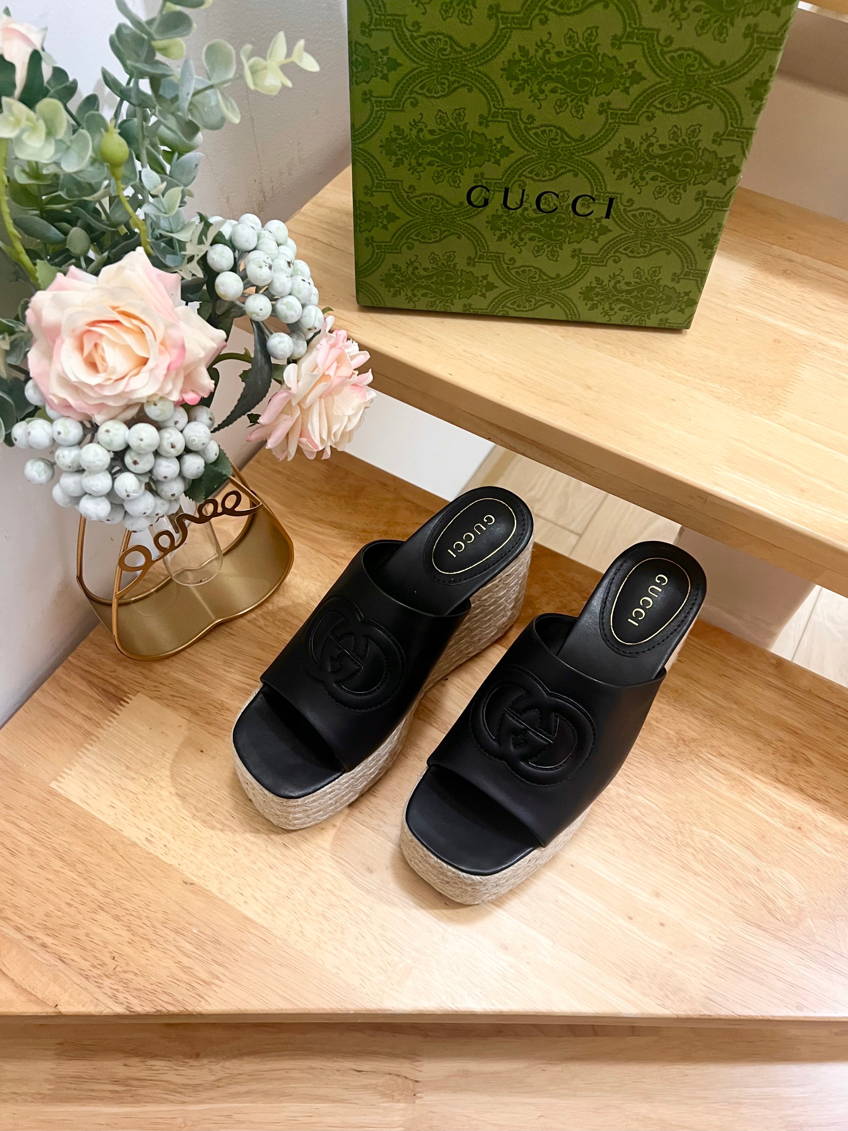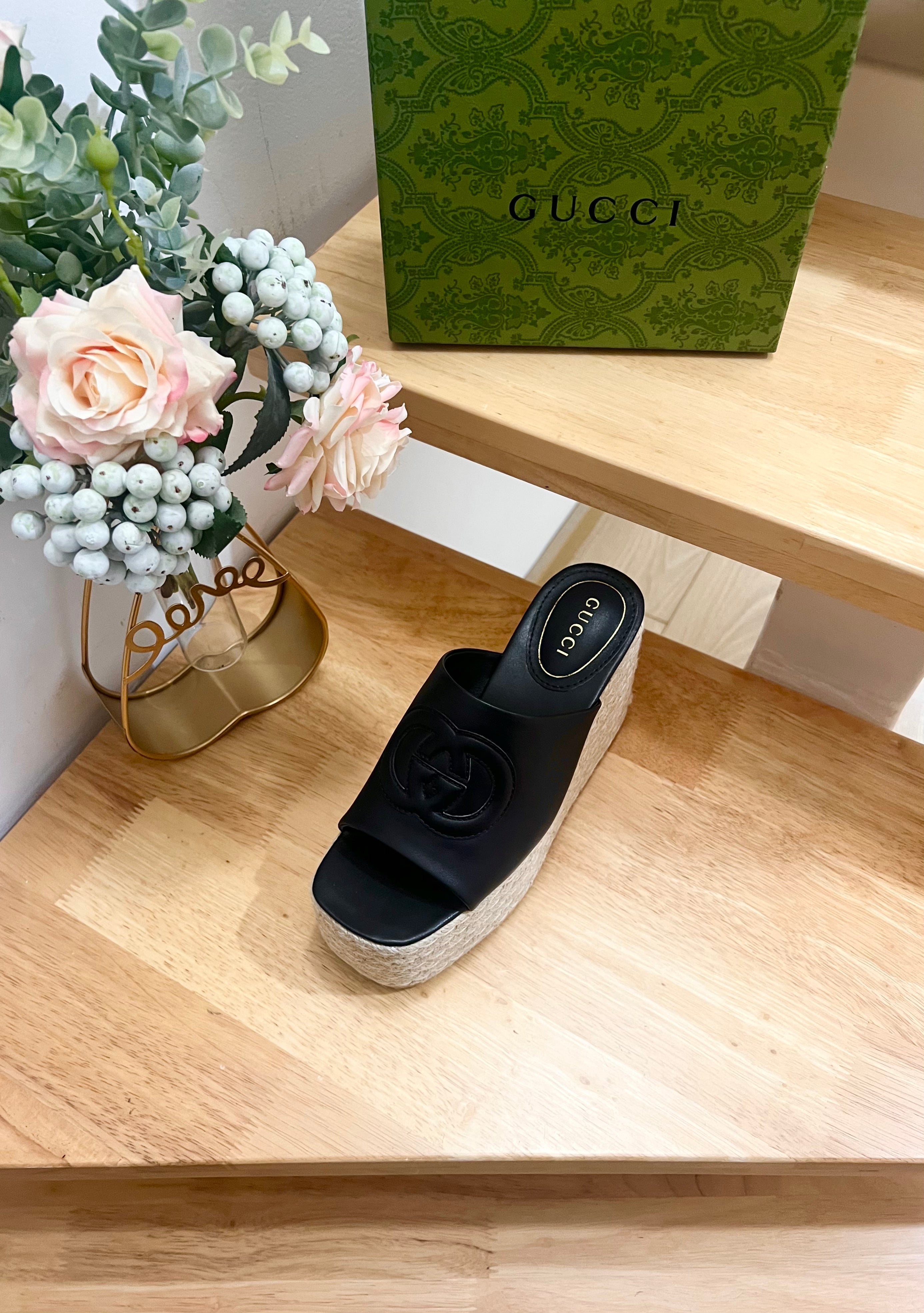 HIGH 10CM WEDGE SANDALS IN BLACK SHEEPSKIN