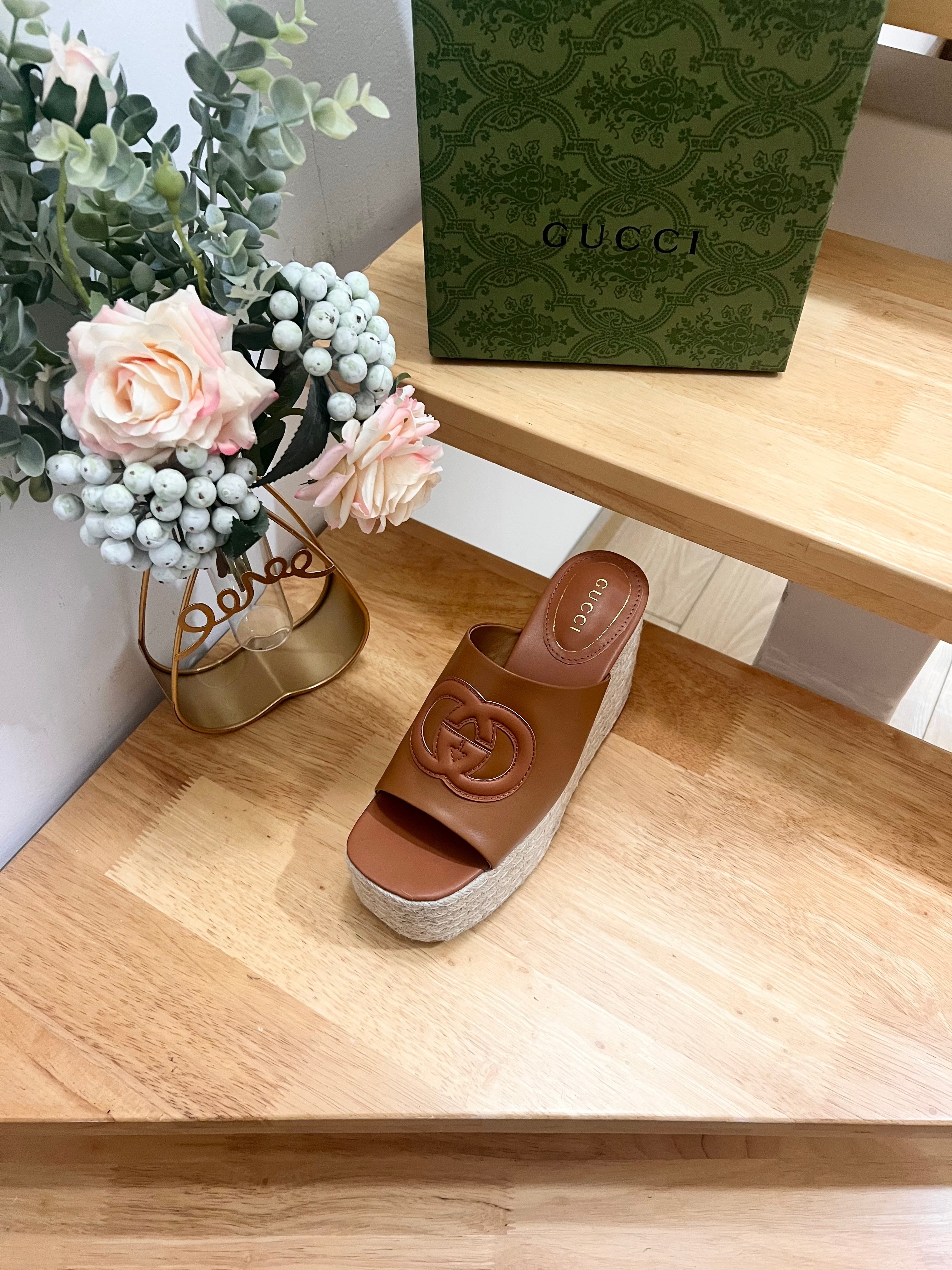 HIGH 10CM WEDGE SANDALS IN RUSSET BROWN SHEEPSKIN