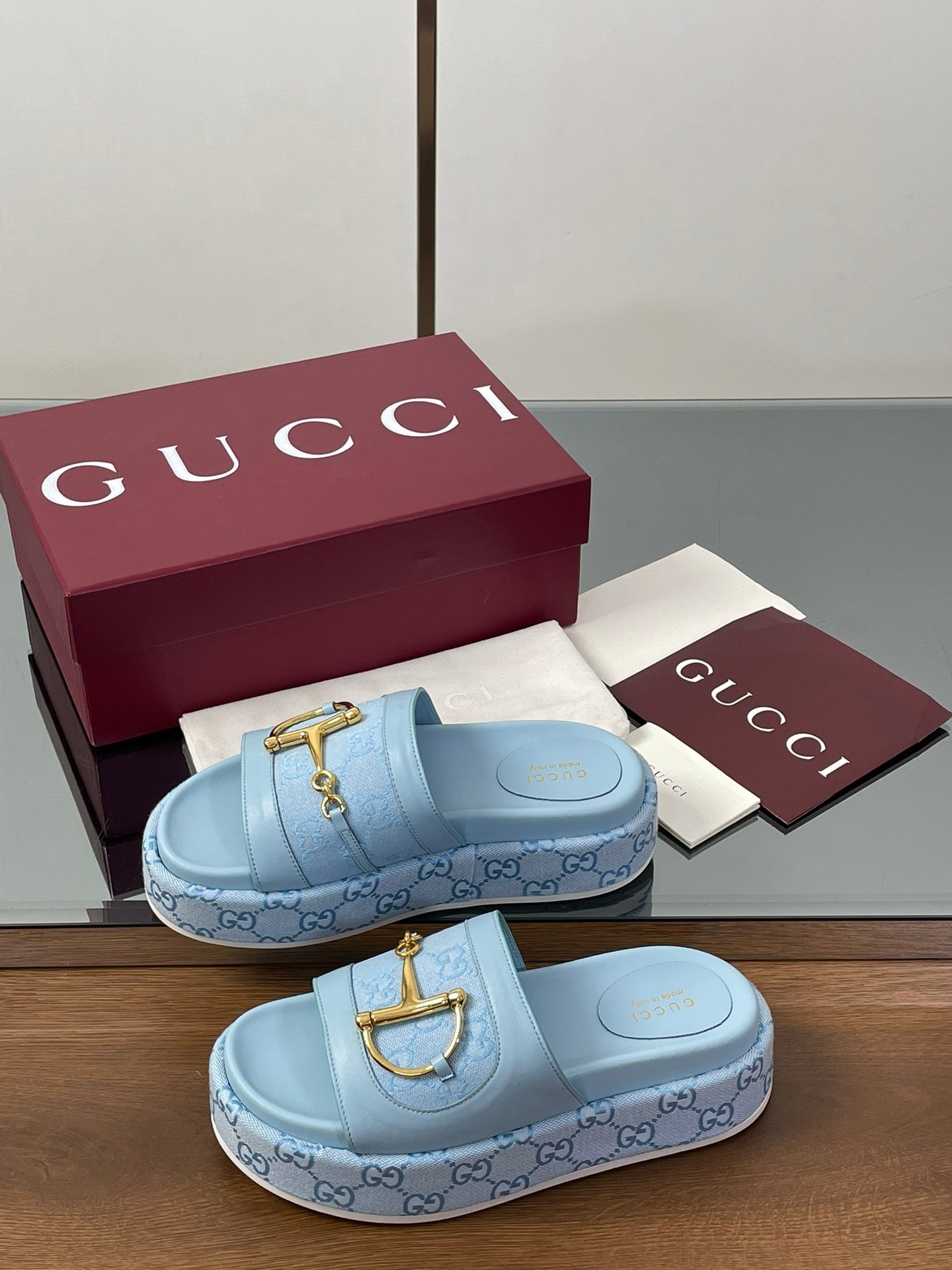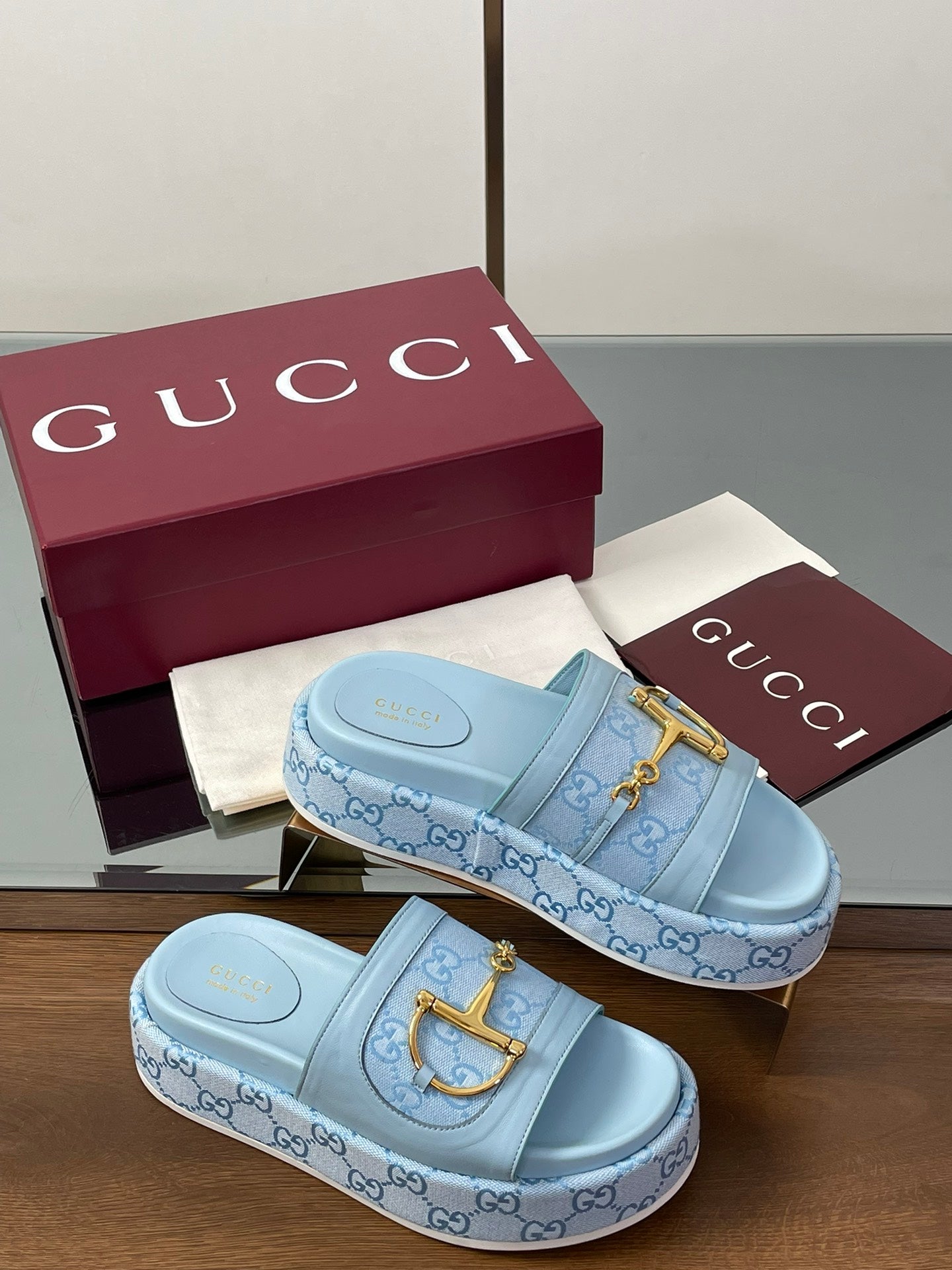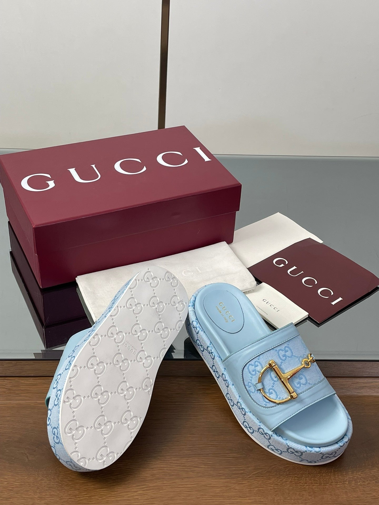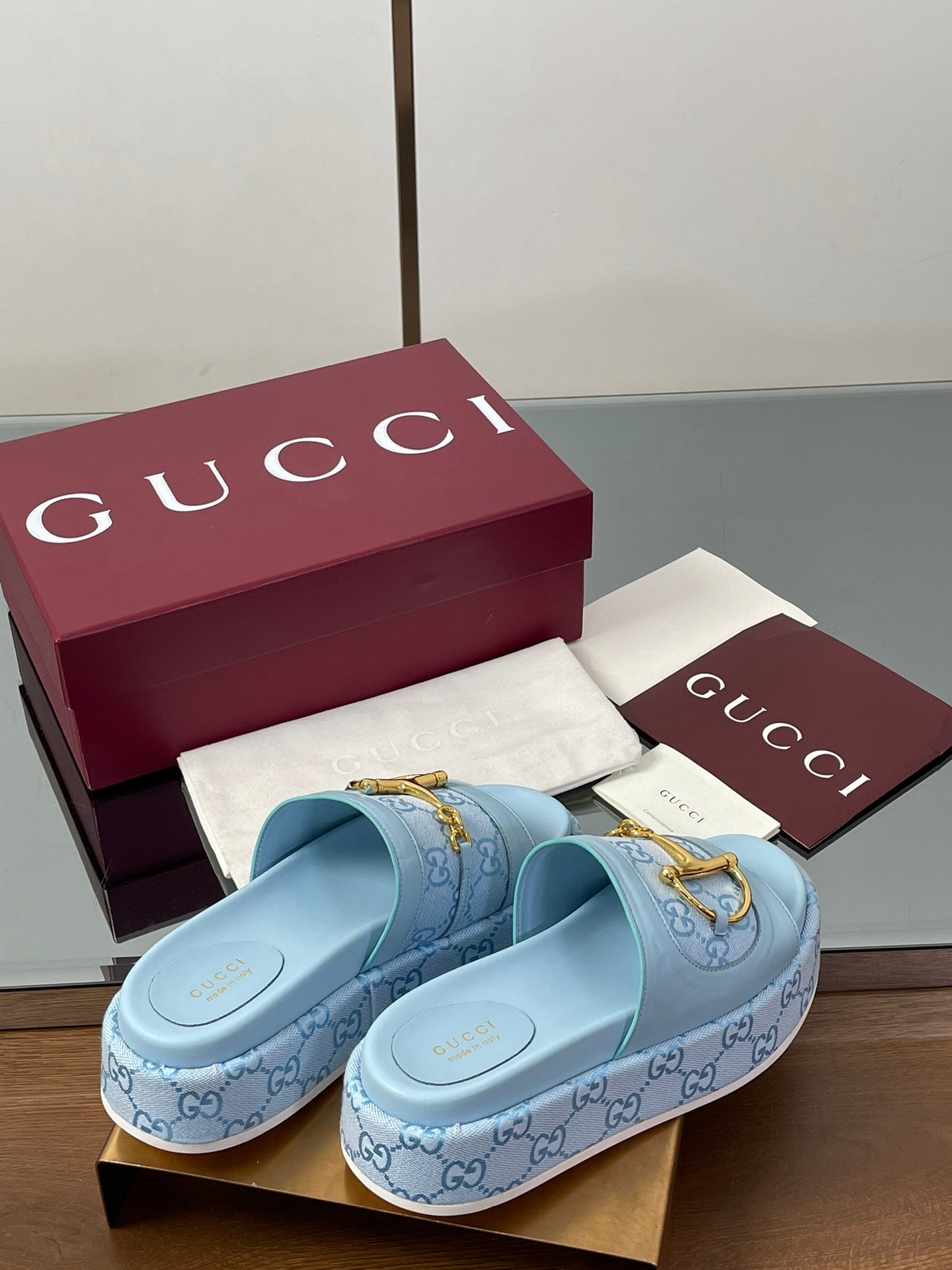 HIGH 5.5 CM WEDGE SANDALS IN BLUE CALFSKIN AND FABRIC