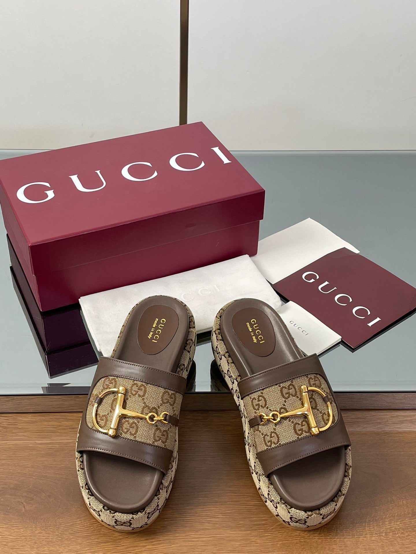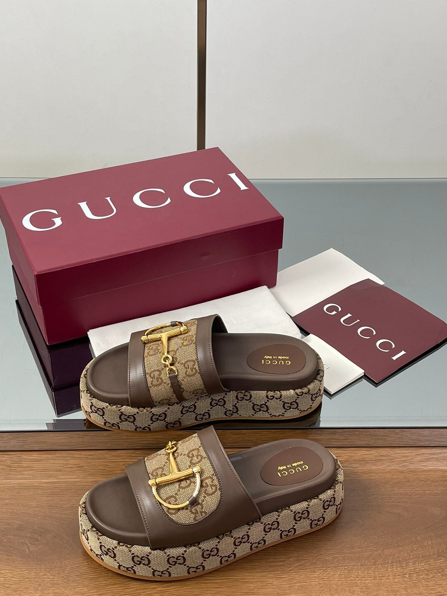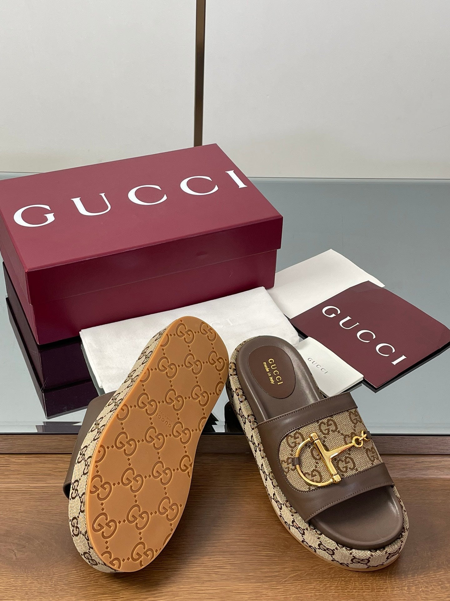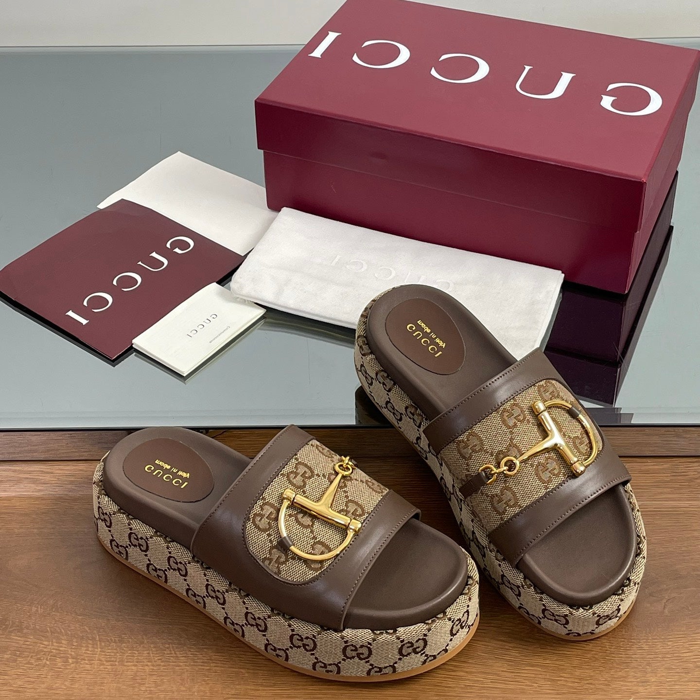 HIGH 5.5 CM WEDGE SANDALS IN BROWN MIX BEIGE CALFSKIN AND FABRIC