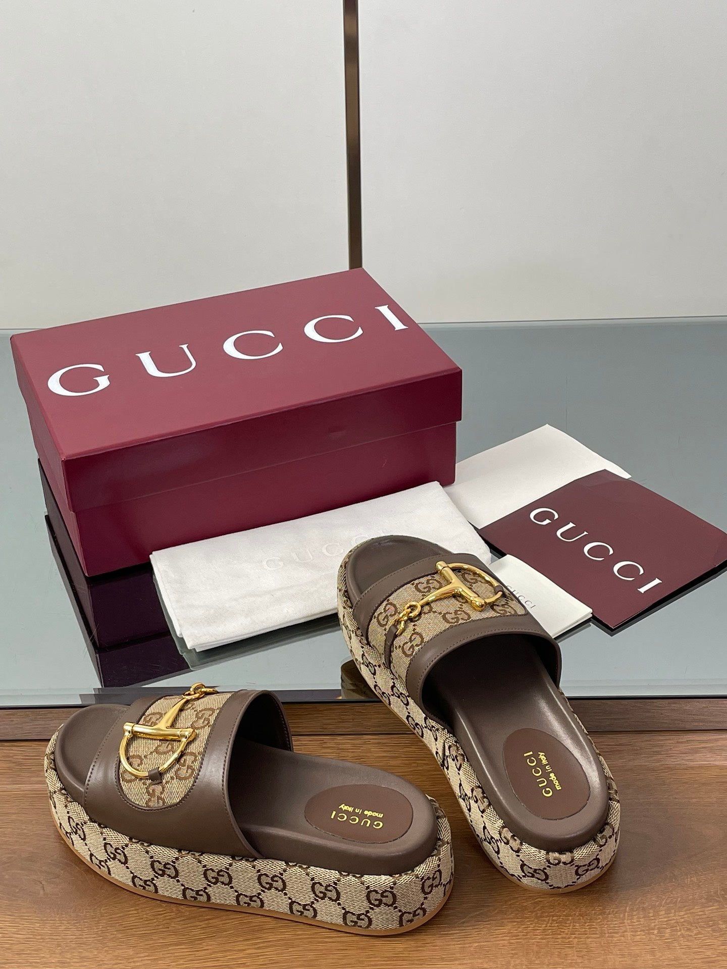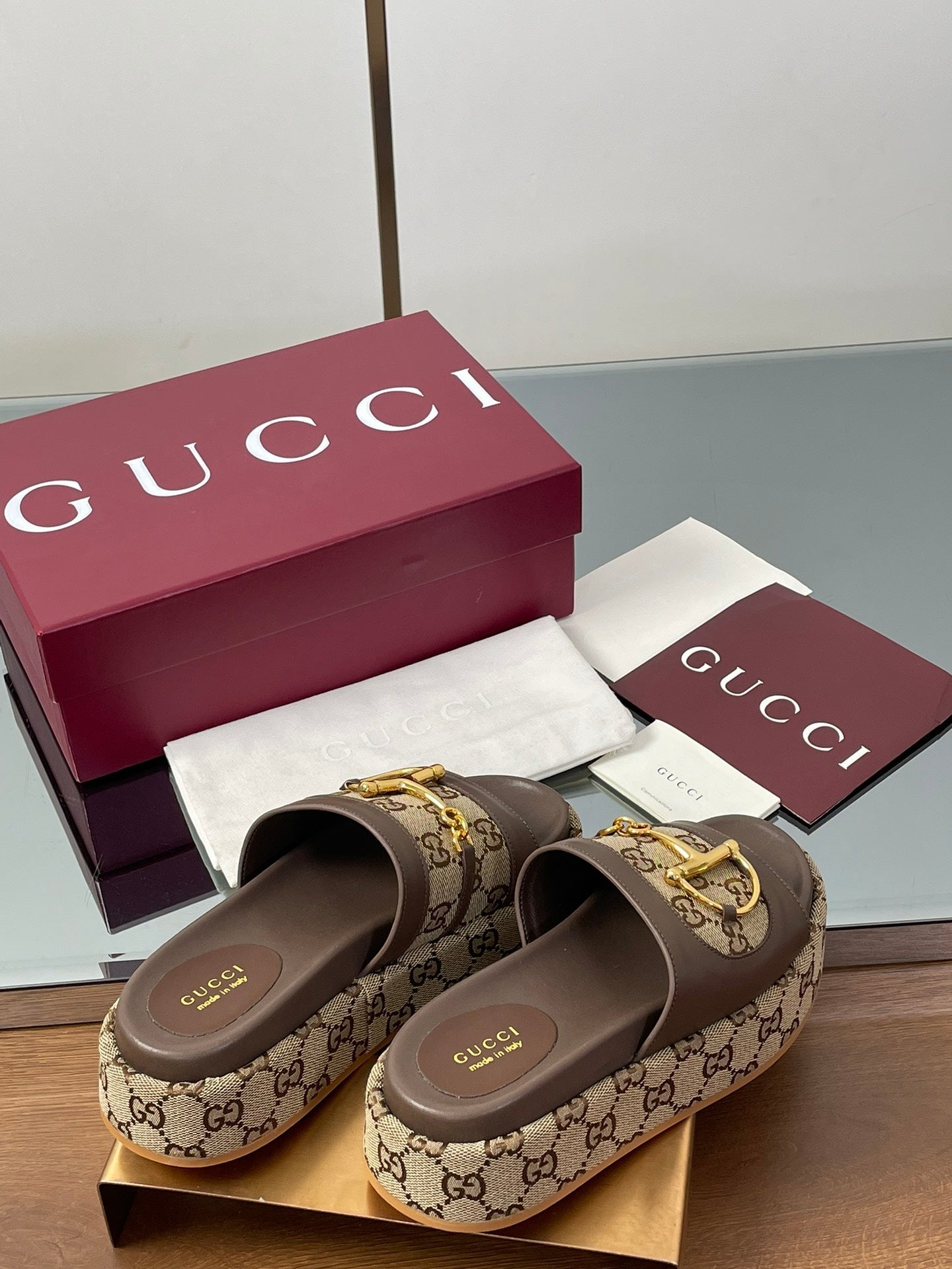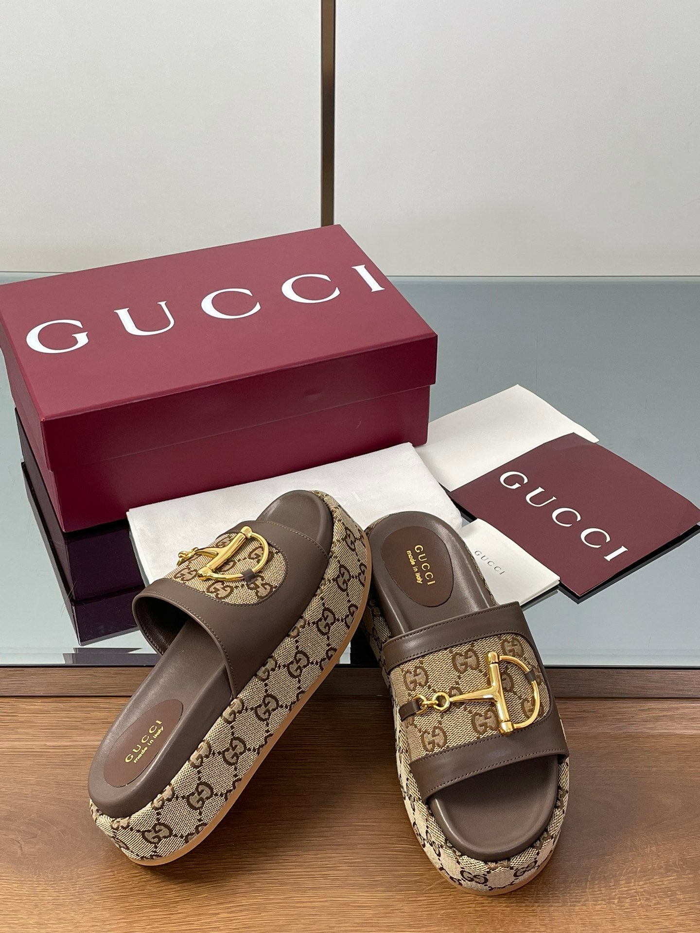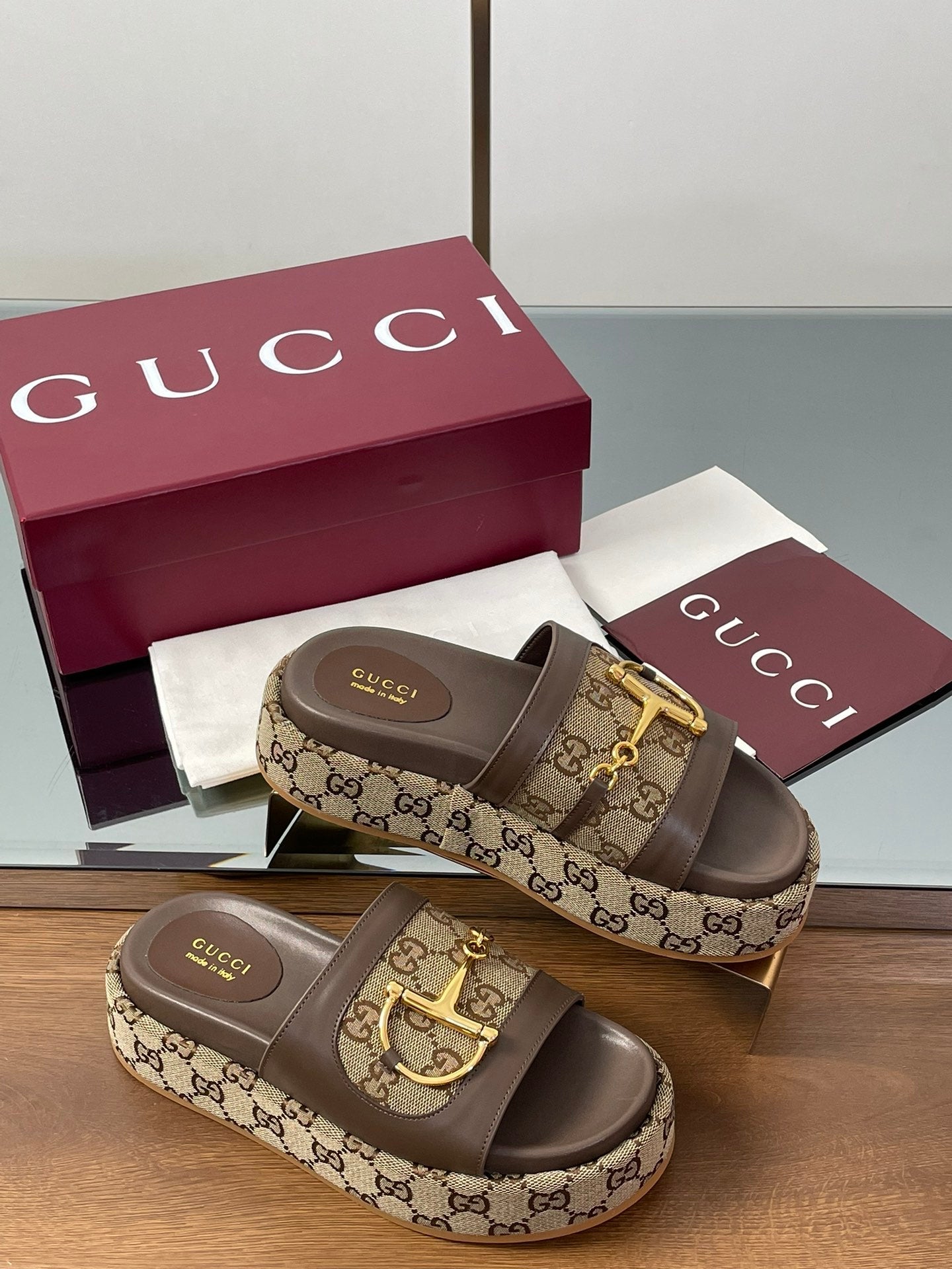 HIGH 5.5 CM WEDGE SANDALS IN BROWN MIX BEIGE CALFSKIN AND FABRIC