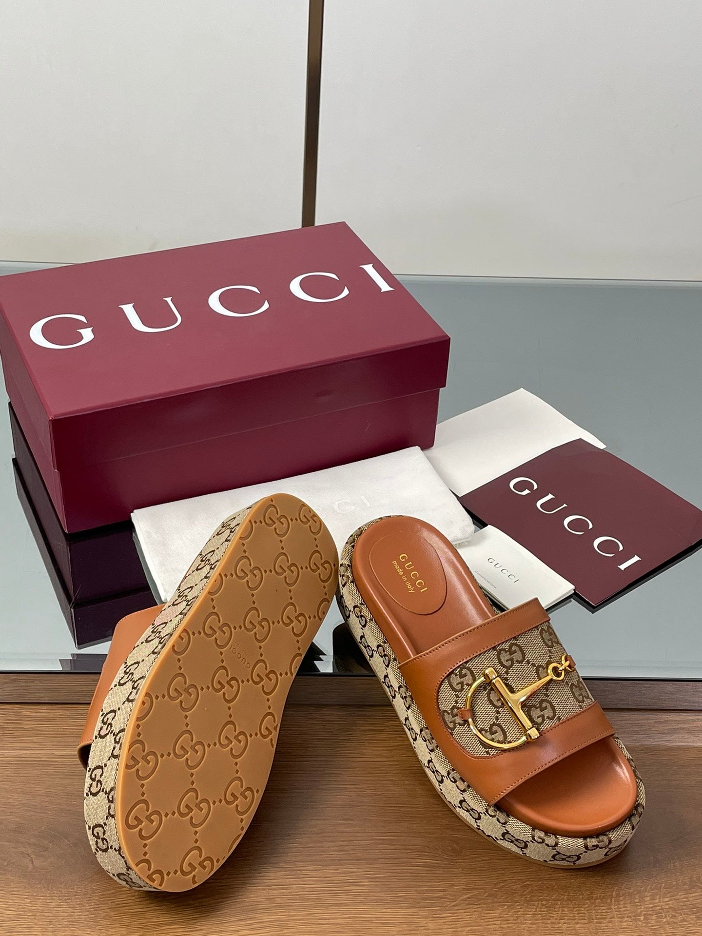 HIGH 5.5 CM WEDGE SANDALS IN BURNT BROWN MIX BEIGE CALFSKIN AND FABRIC