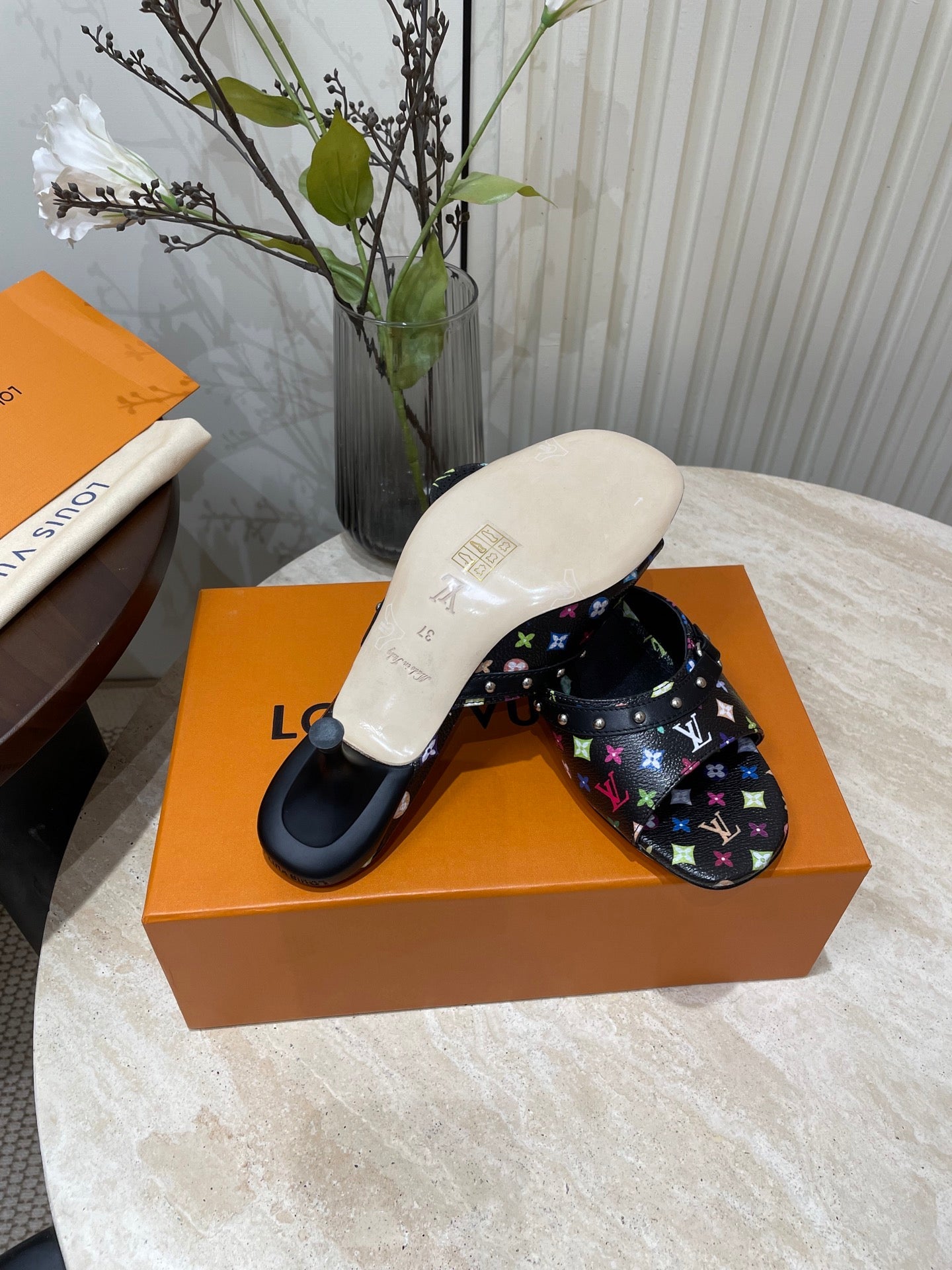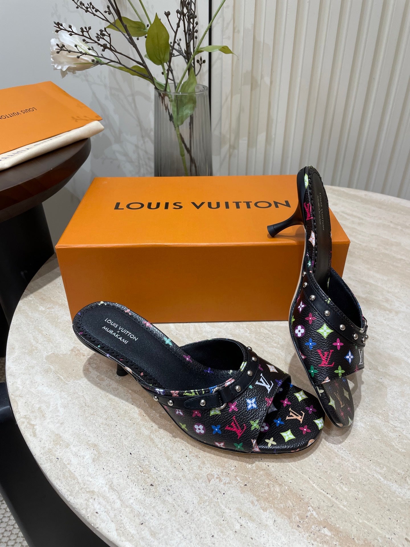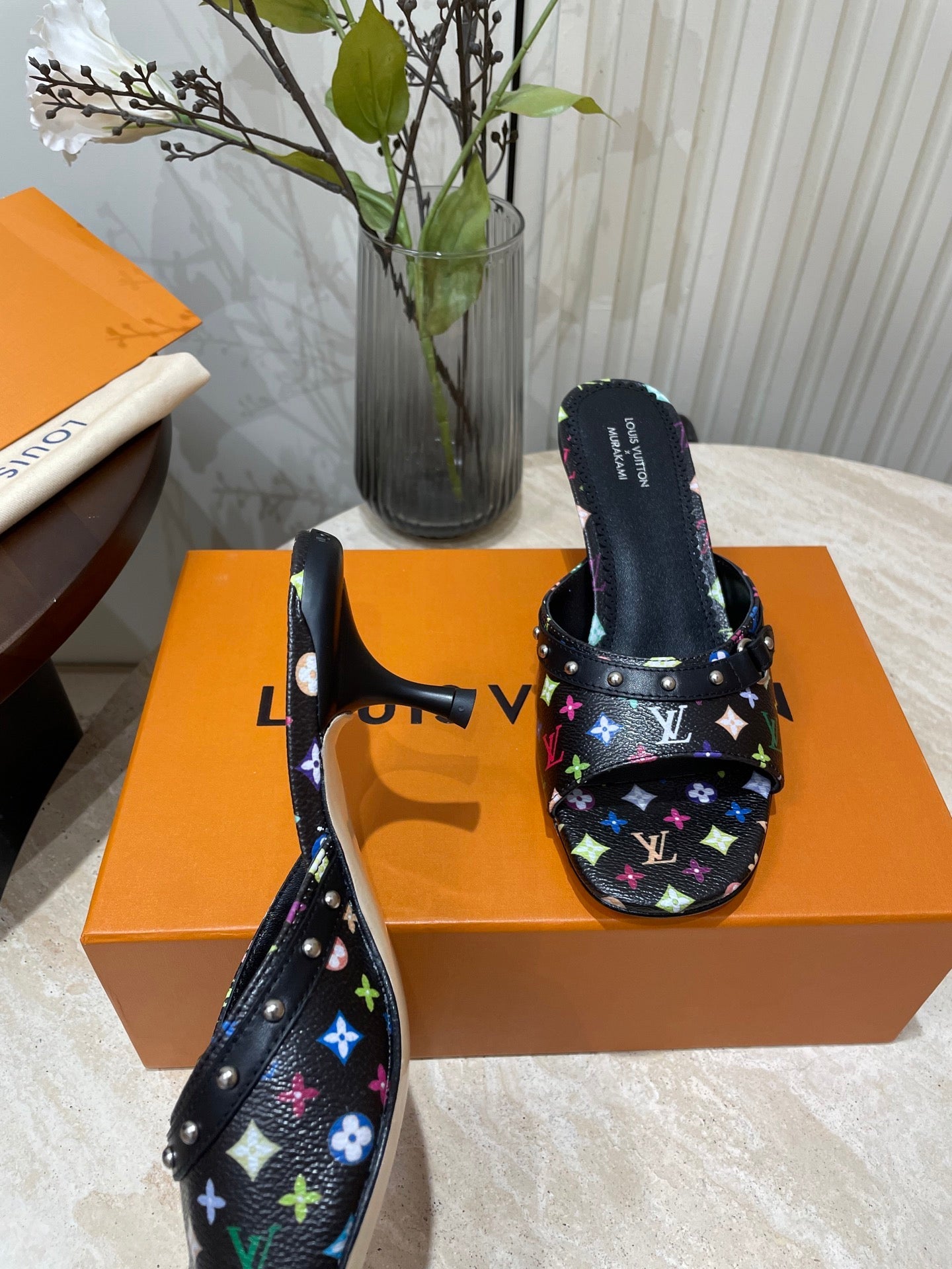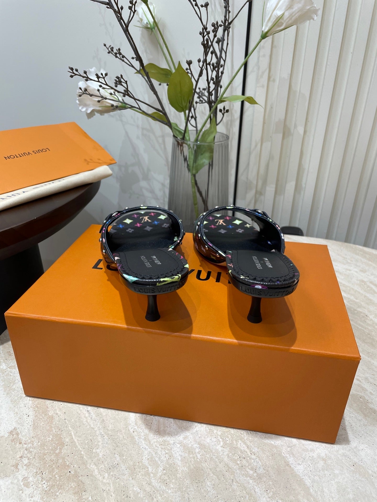 HIGH 5 CM MULES IN BLACK MONOGRAM LAMBSKIN