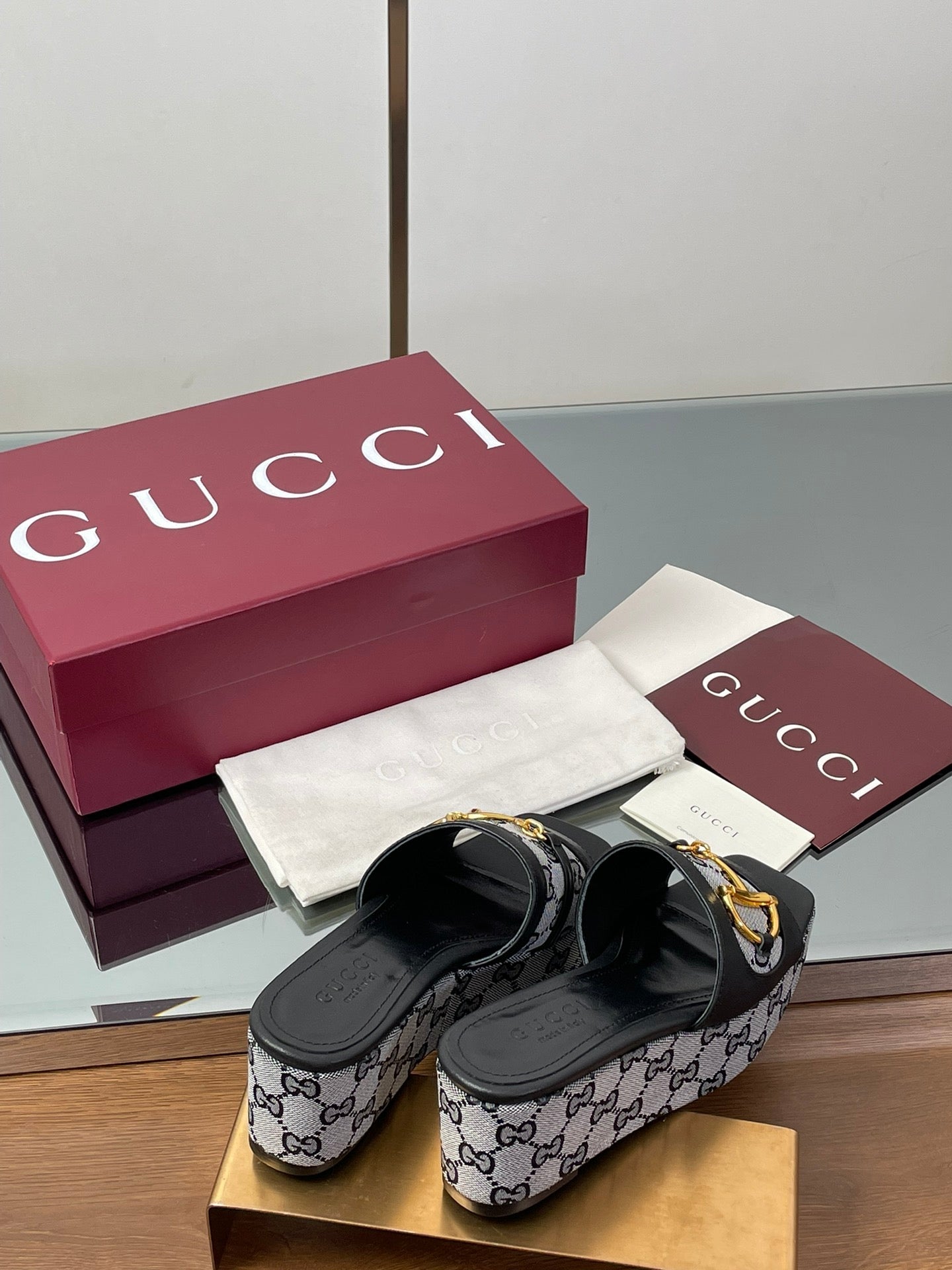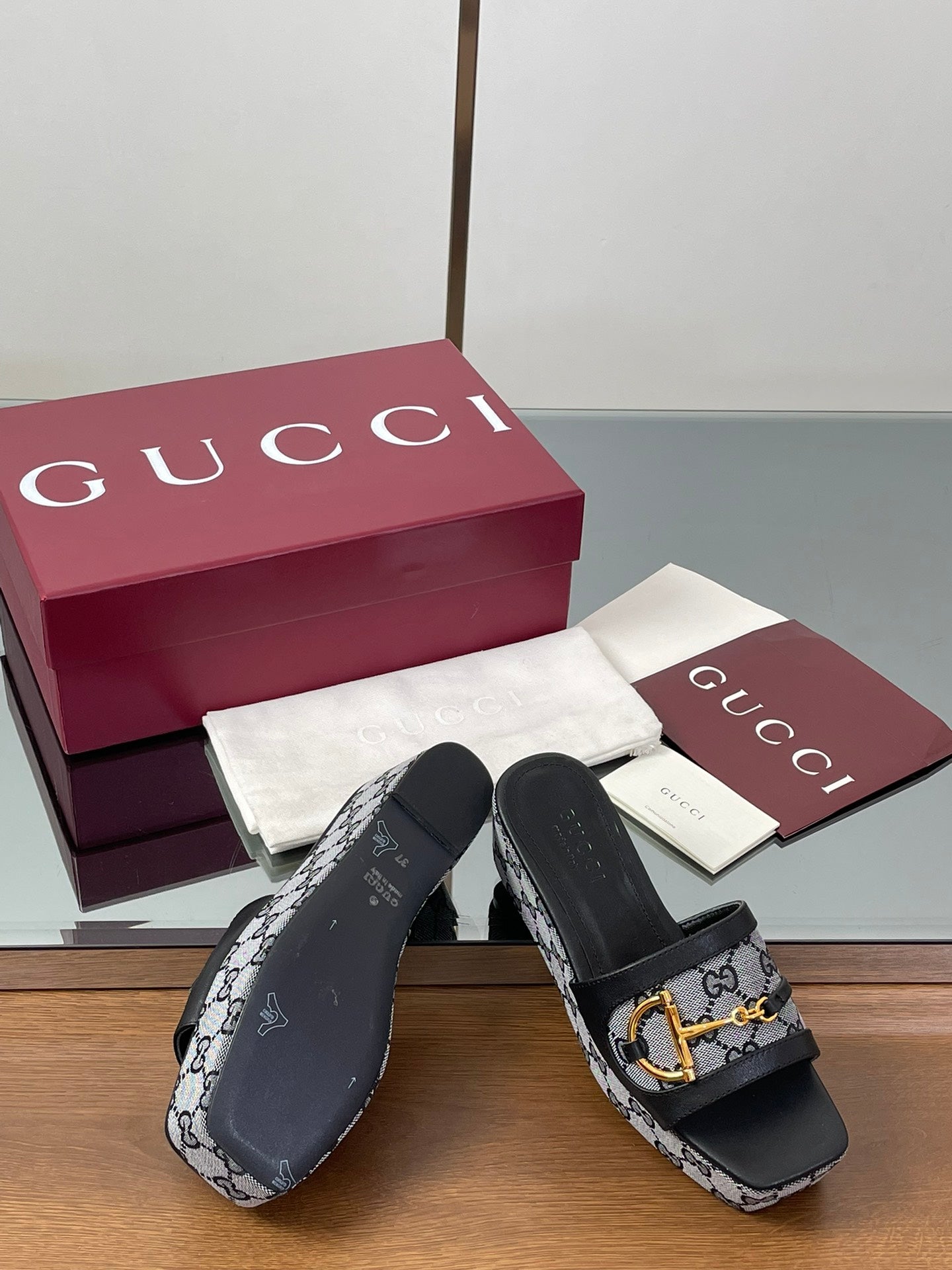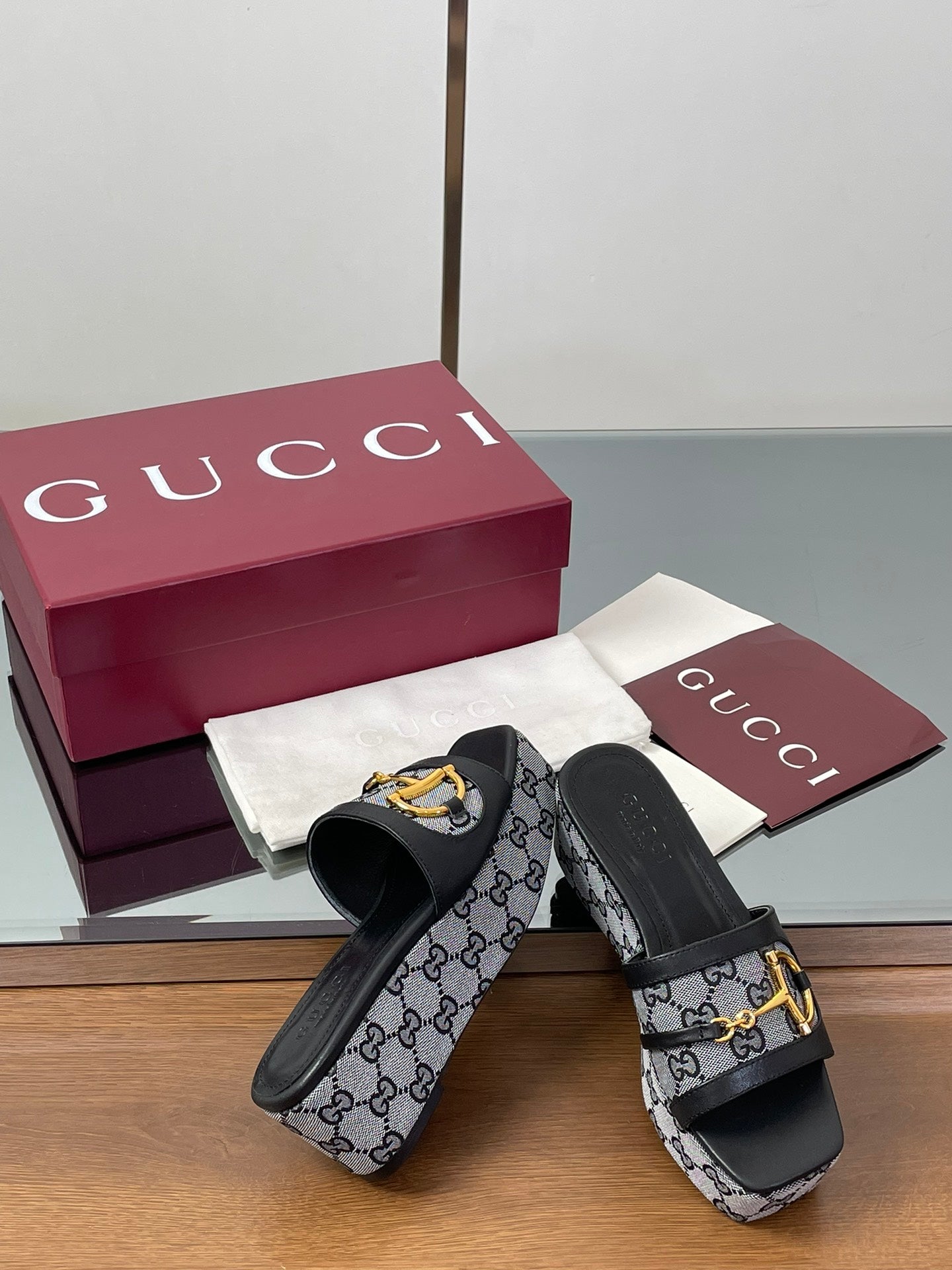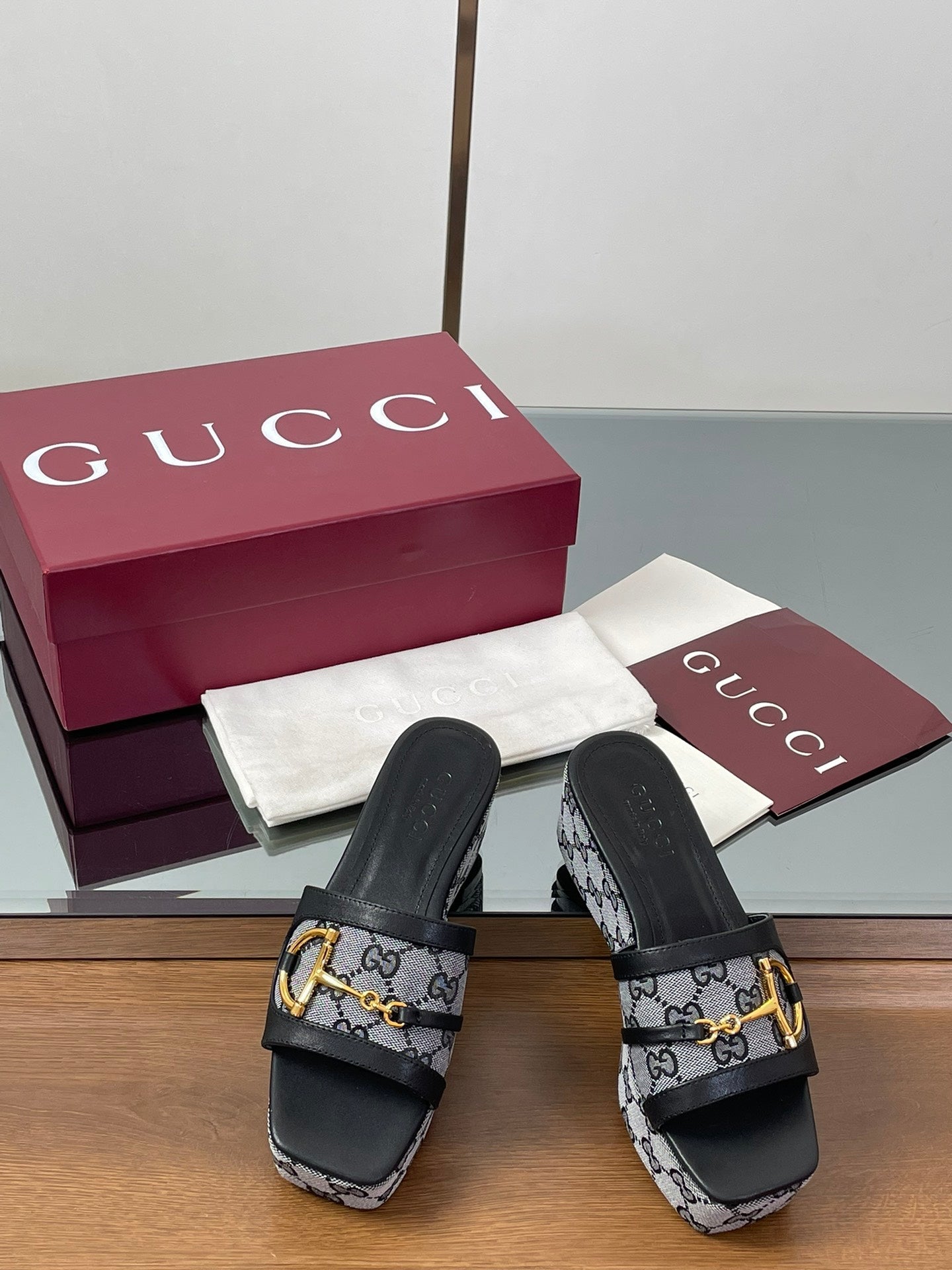 HIGH 6.3 CM WEDGE SANDALS IN BLACK CALFSKIN AND FABRIC