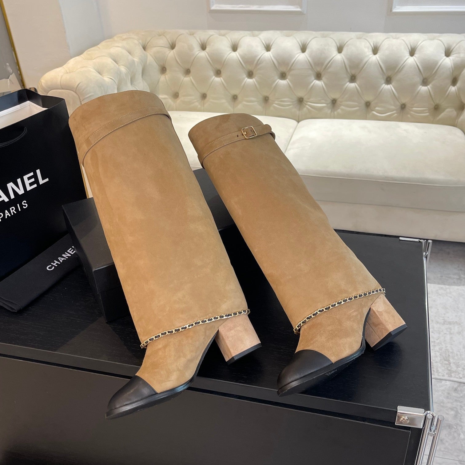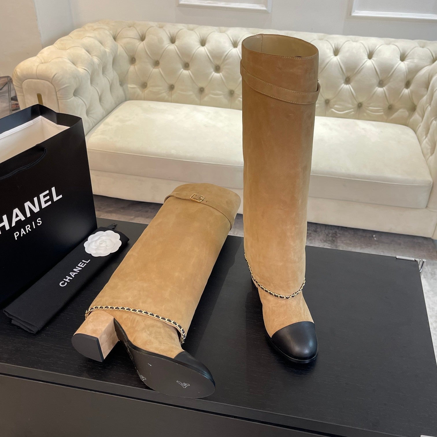 HIGH BOOTS 6.5 CM IN CIDER BROWN SUEDE AND BLACK CALFSKIN