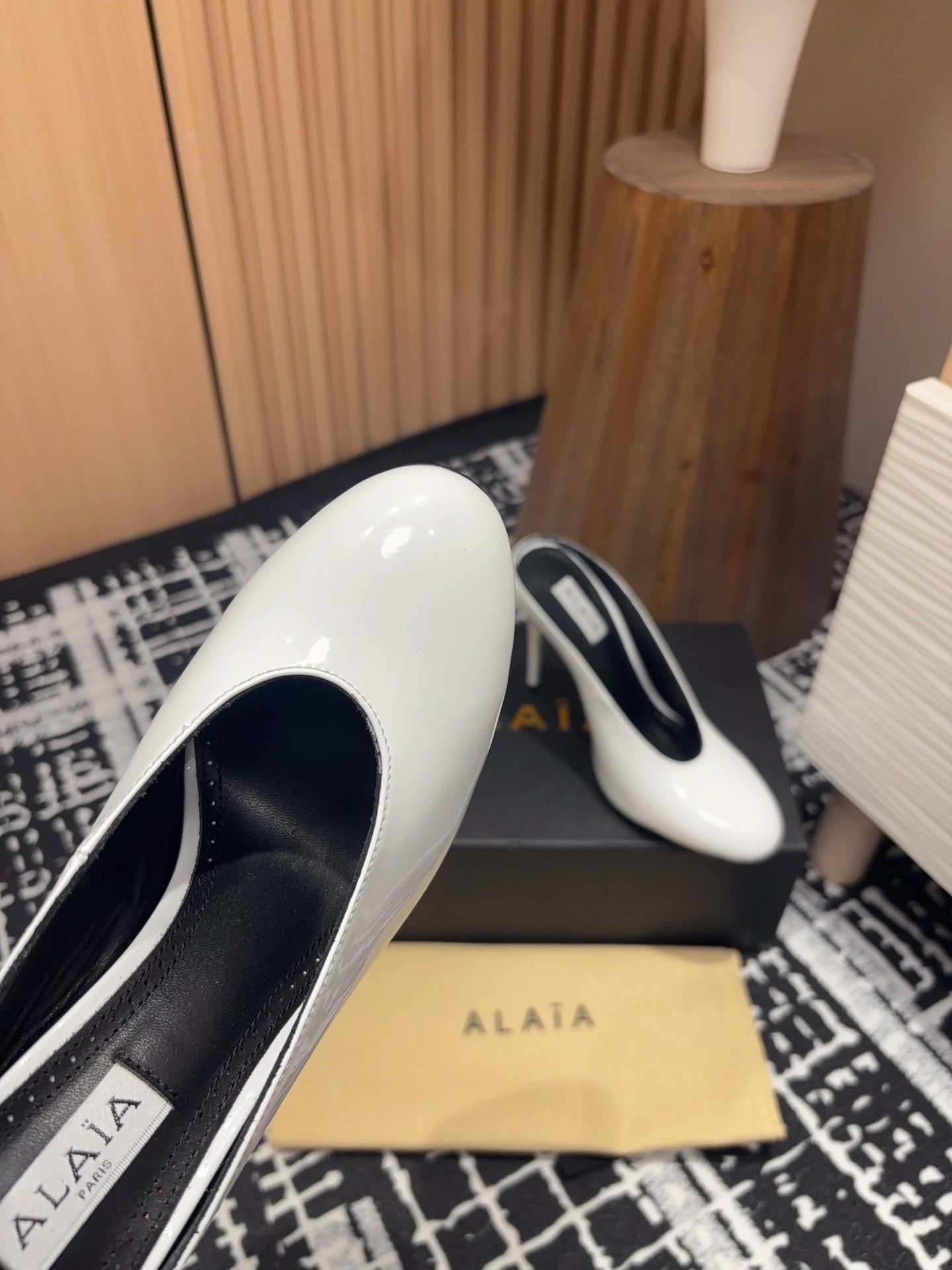 HIGH-HEEL 10 CM MULES IN WHITE PATENT CALFSKIN