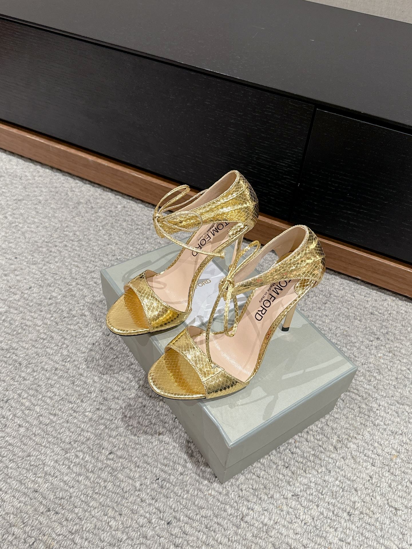HIGH HEEL 10 CM SANDAL IN GOLD CALFSKIN 684363